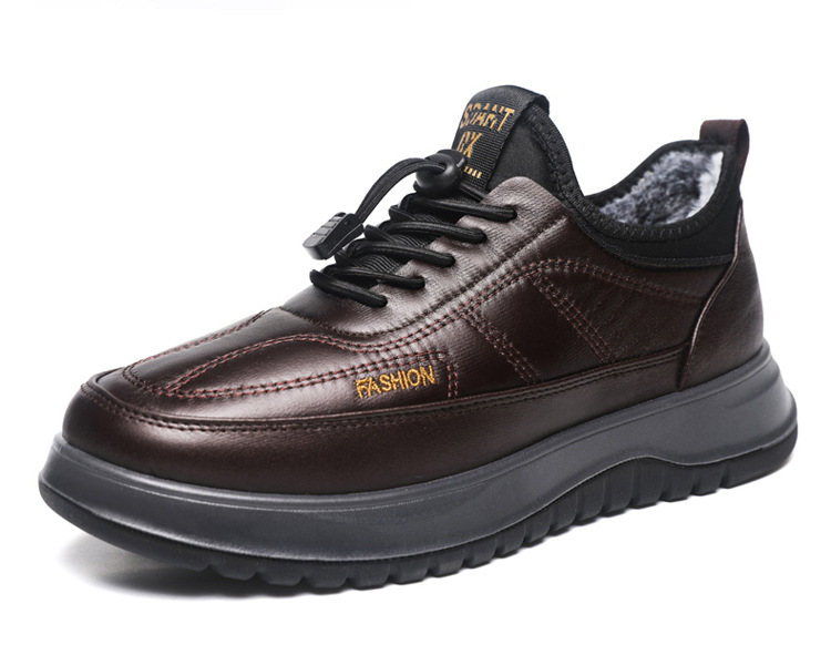 겨울 새 스타일 코튼 신발 남성 기모 따뜻한 유지 스포츠 캐주얼 신발 가죽 표면 방수 중년 슬립 온 게으른 신발스토어 가기