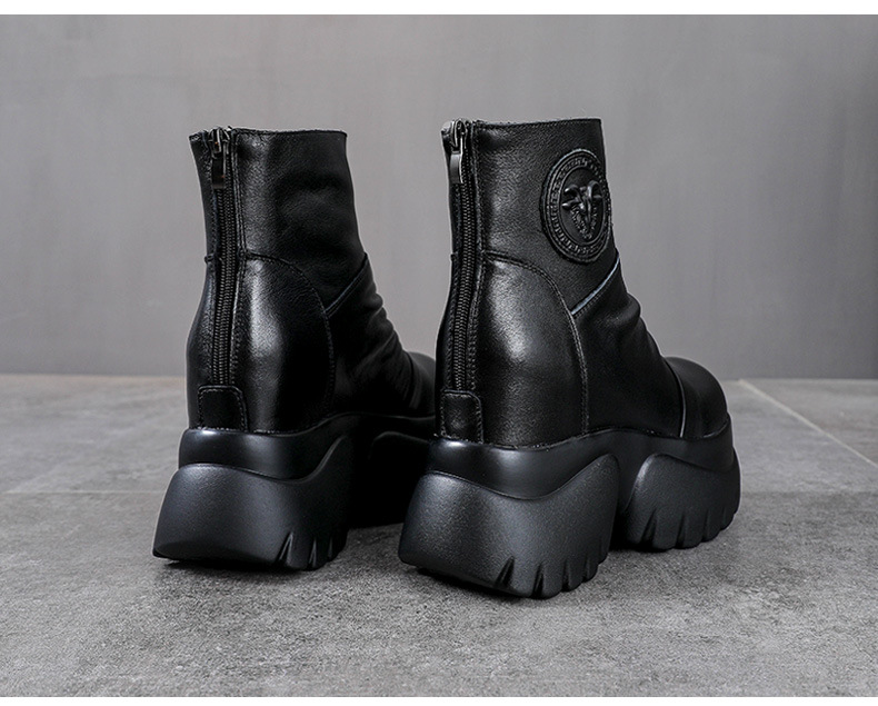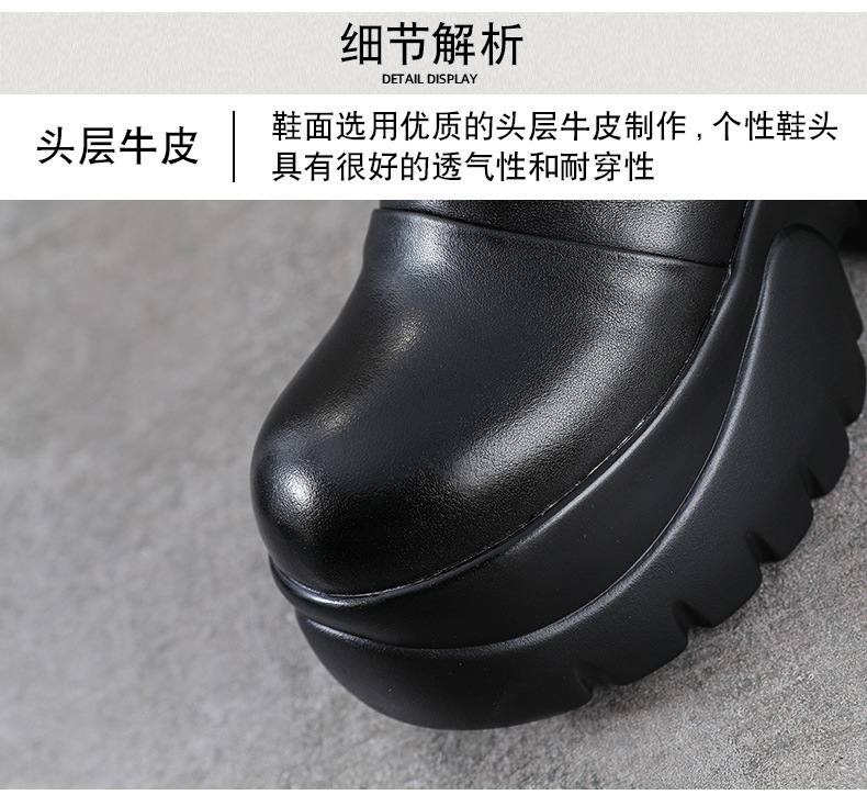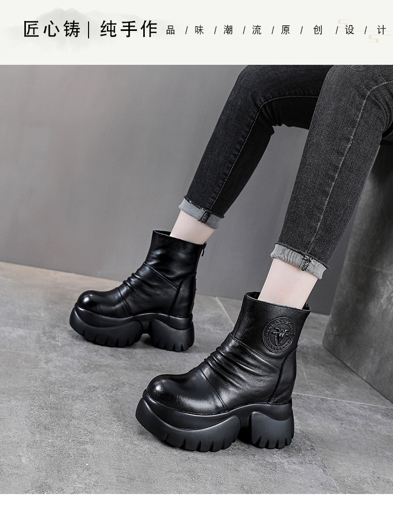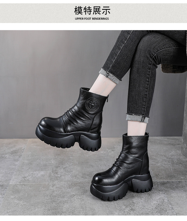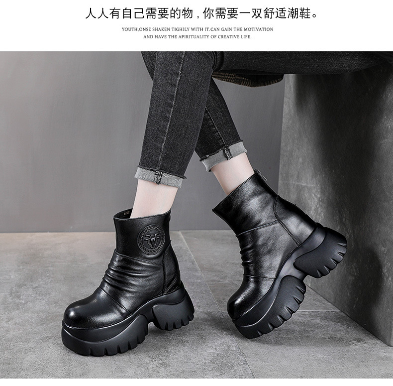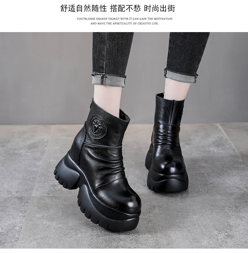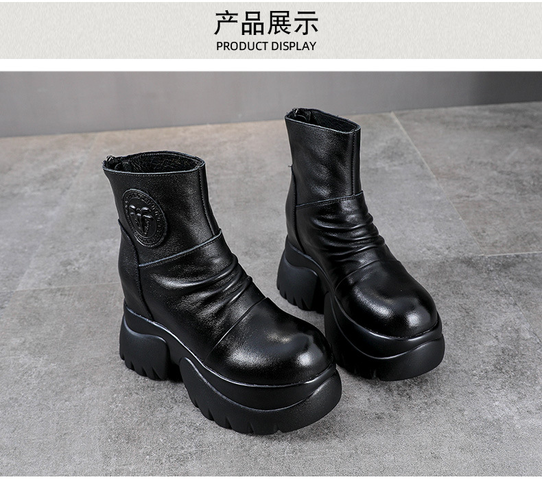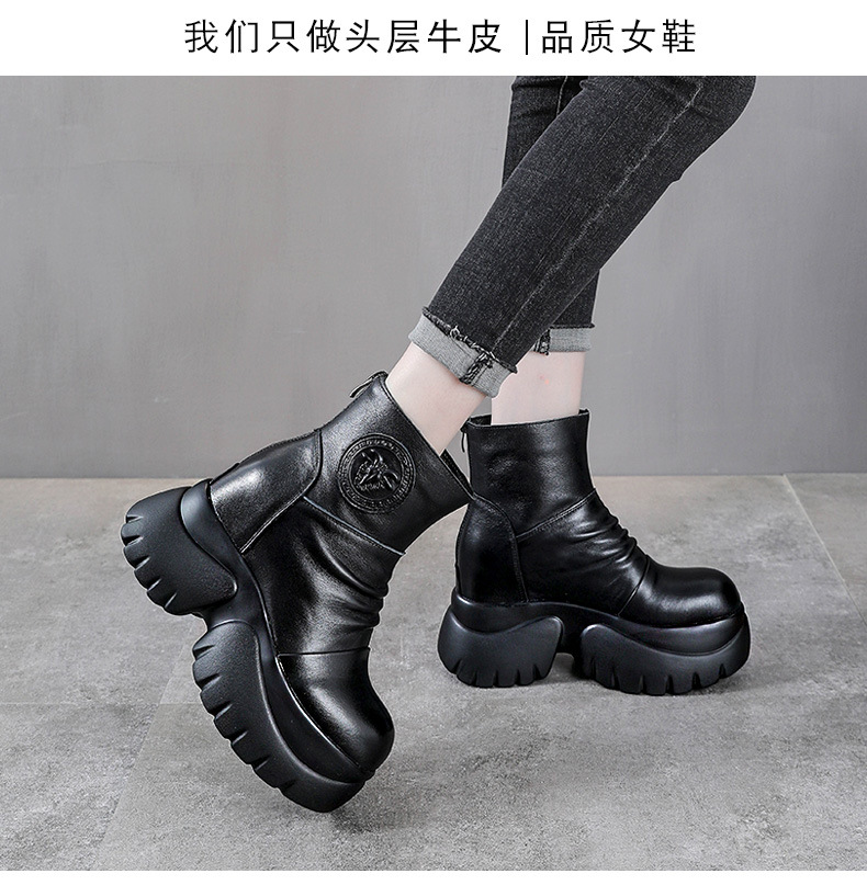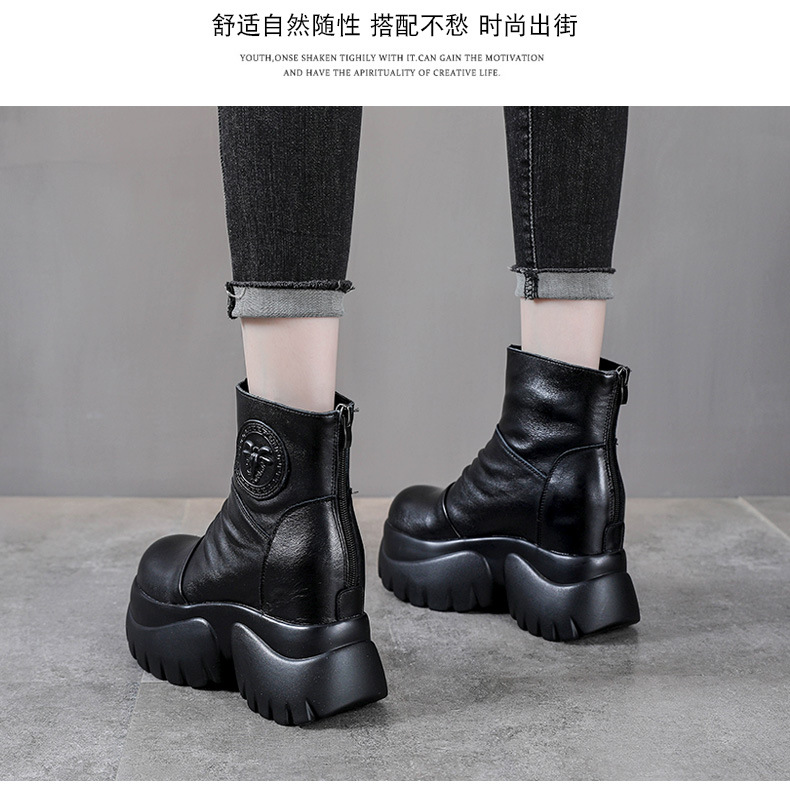 탑 레이어 소 가죽 하이힐 마틴 부츠 여성용 가을과 겨울 새로운 정품 가죽 9cm 두께의 짧은 부츠 플랫폼 케이크 힐 싱글 레이어 부츠스토어 가기