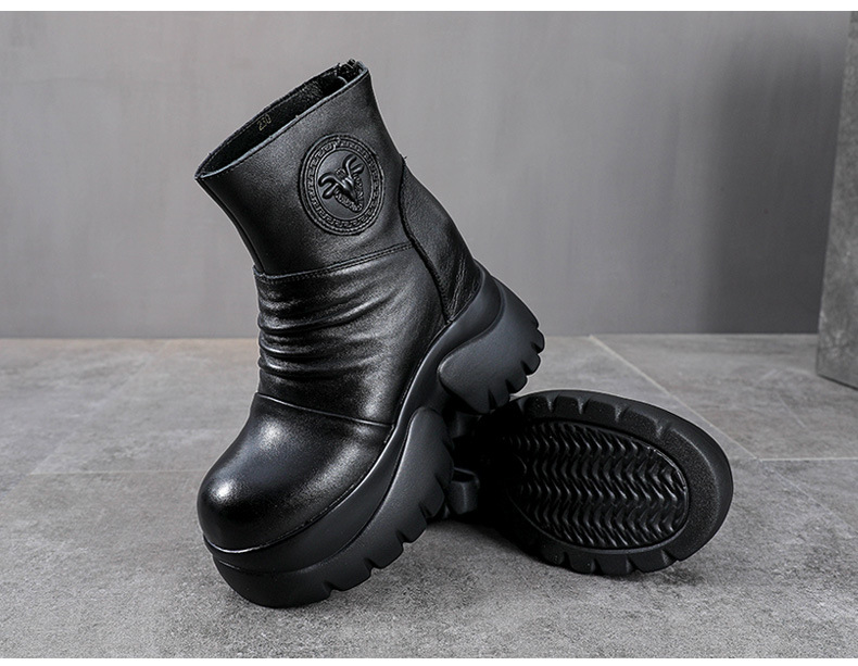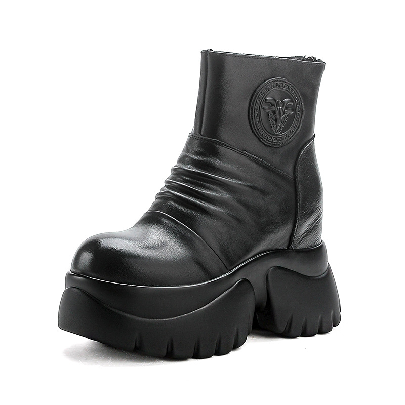 탑 레이어 소 가죽 하이힐 마틴 부츠 여성용 가을과 겨울 새로운 정품 가죽 9cm 두께의 짧은 부츠 플랫폼 케이크 힐 싱글 레이어 부츠