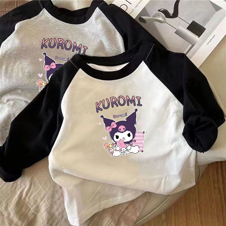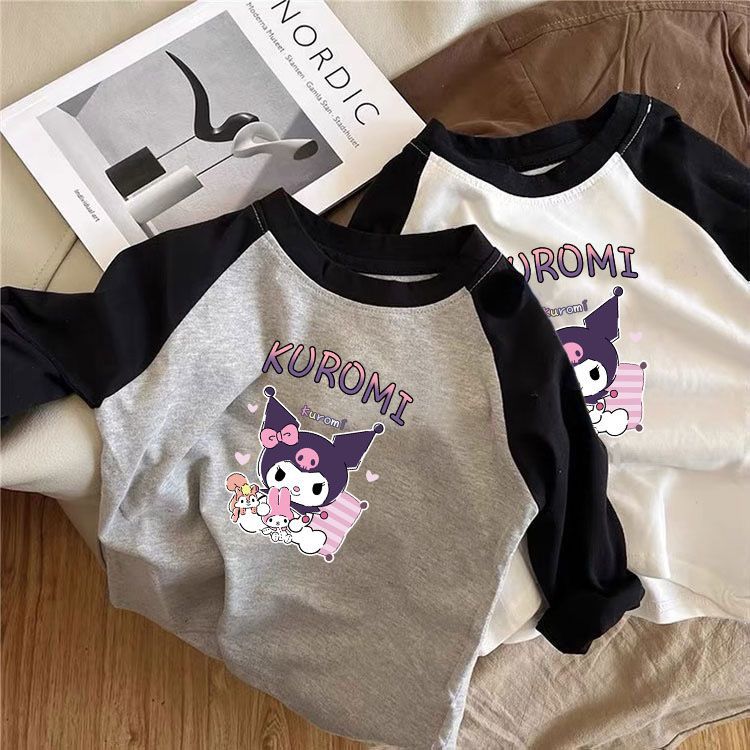 소녀 긴팔 티셔츠 봄과 가을 2024 새로운 서양식 어린이 짧은 인기 아기 만화 가을베이스 셔츠스토어 가기