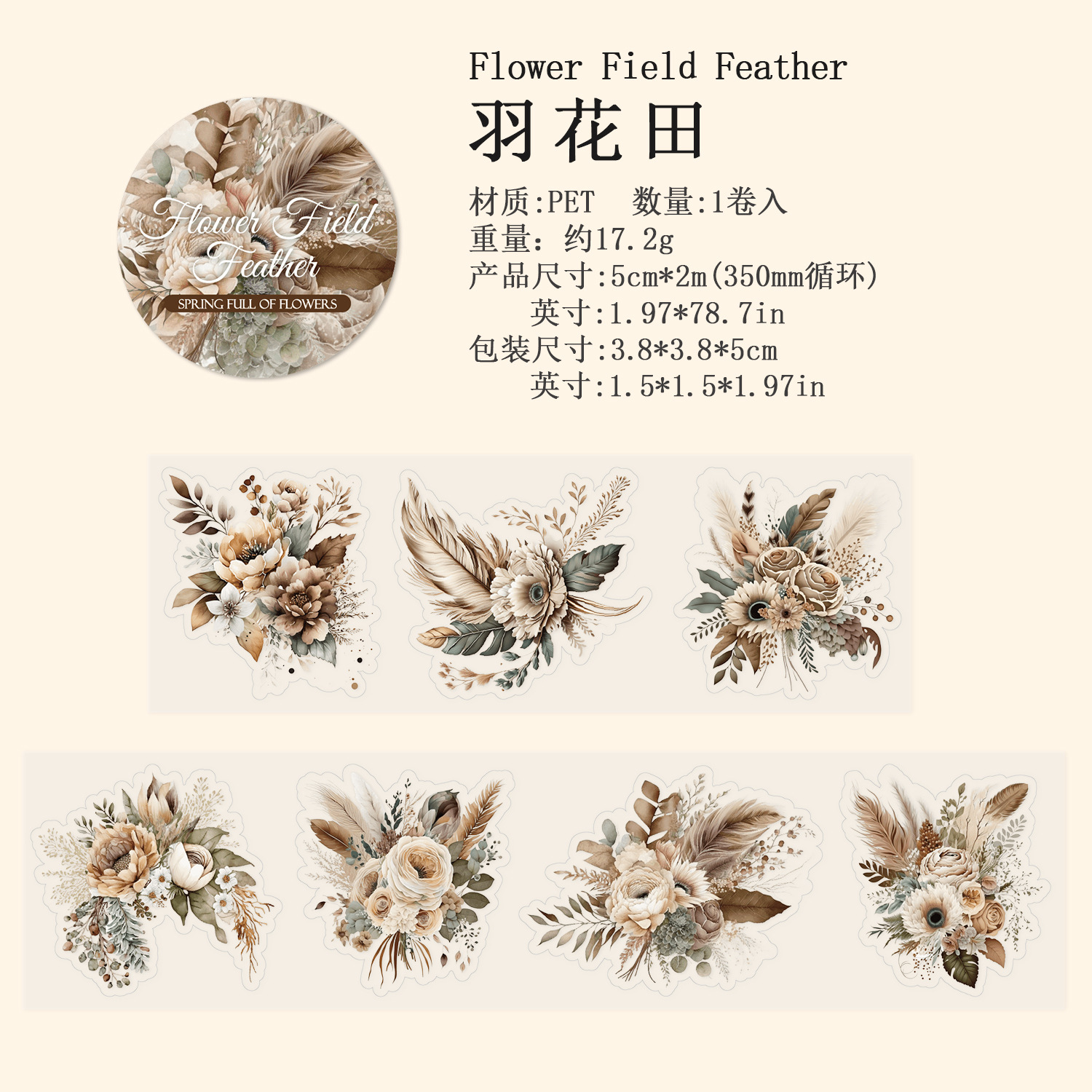 국경 고대 숲 봄 산 꽃 덩굴 시리즈 복고풍 꽃 PET 손 계정 테이프 콜라주 장식 스트립 소재스토어 가기