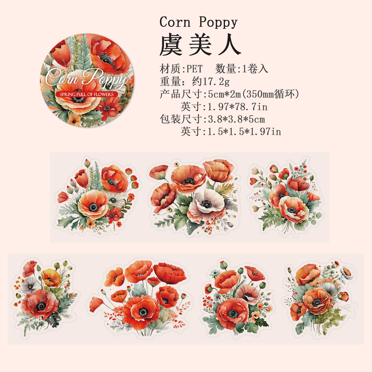 국경 고대 숲 봄 산 꽃 덩굴 시리즈 복고풍 꽃 PET 손 계정 테이프 콜라주 장식 스트립 소재