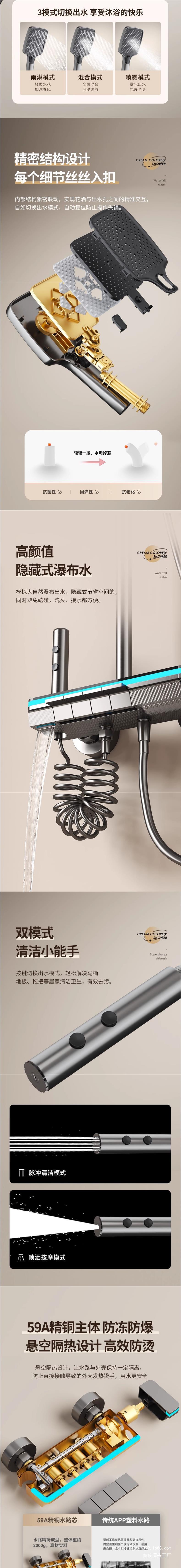 새로운 일정한 온도 디지털 디스플레이 분위기 램프 가정용 욕실 샤워 부스터 샤워 화장실 세트 구리 피아노 도매로