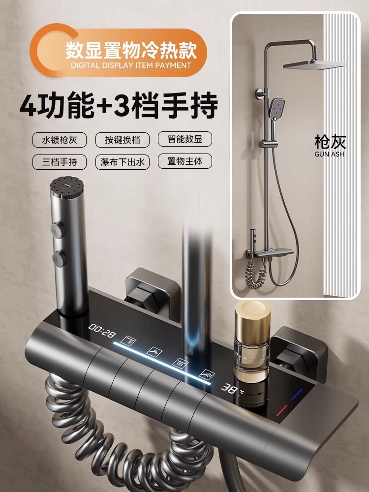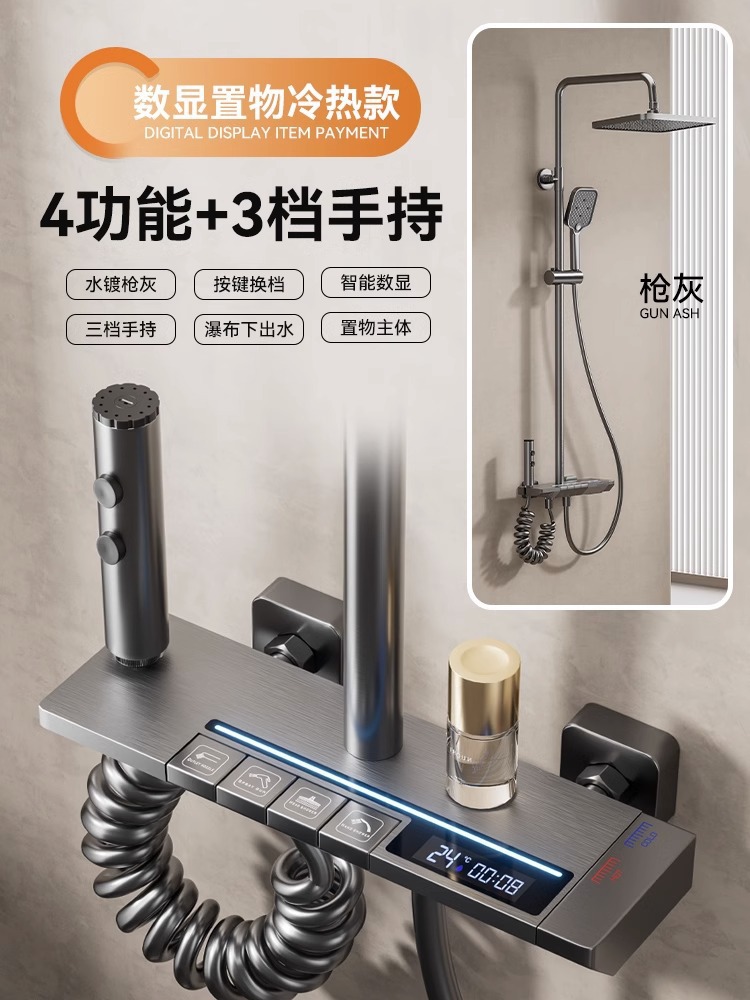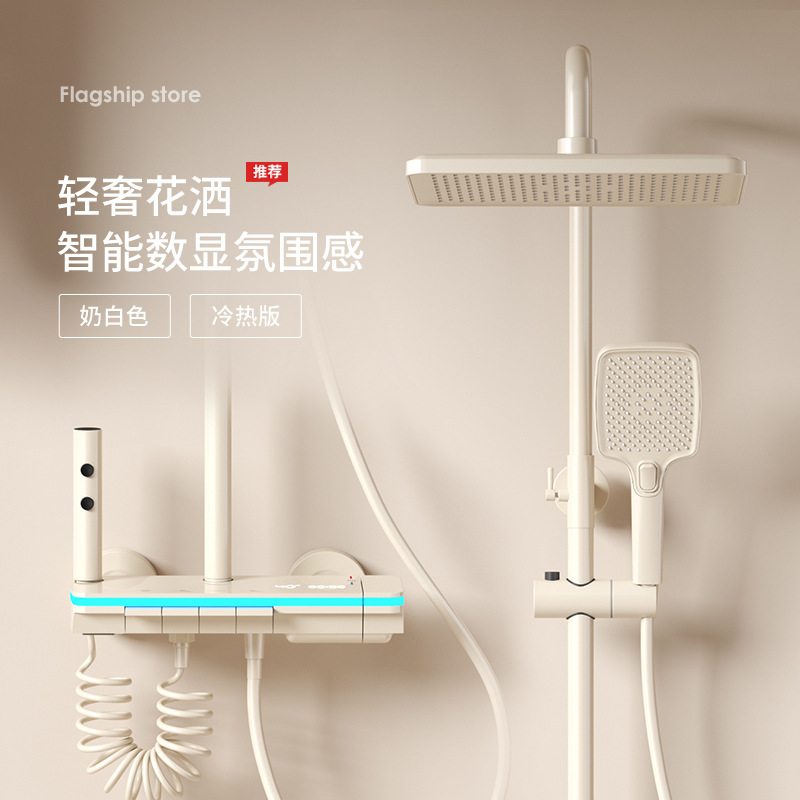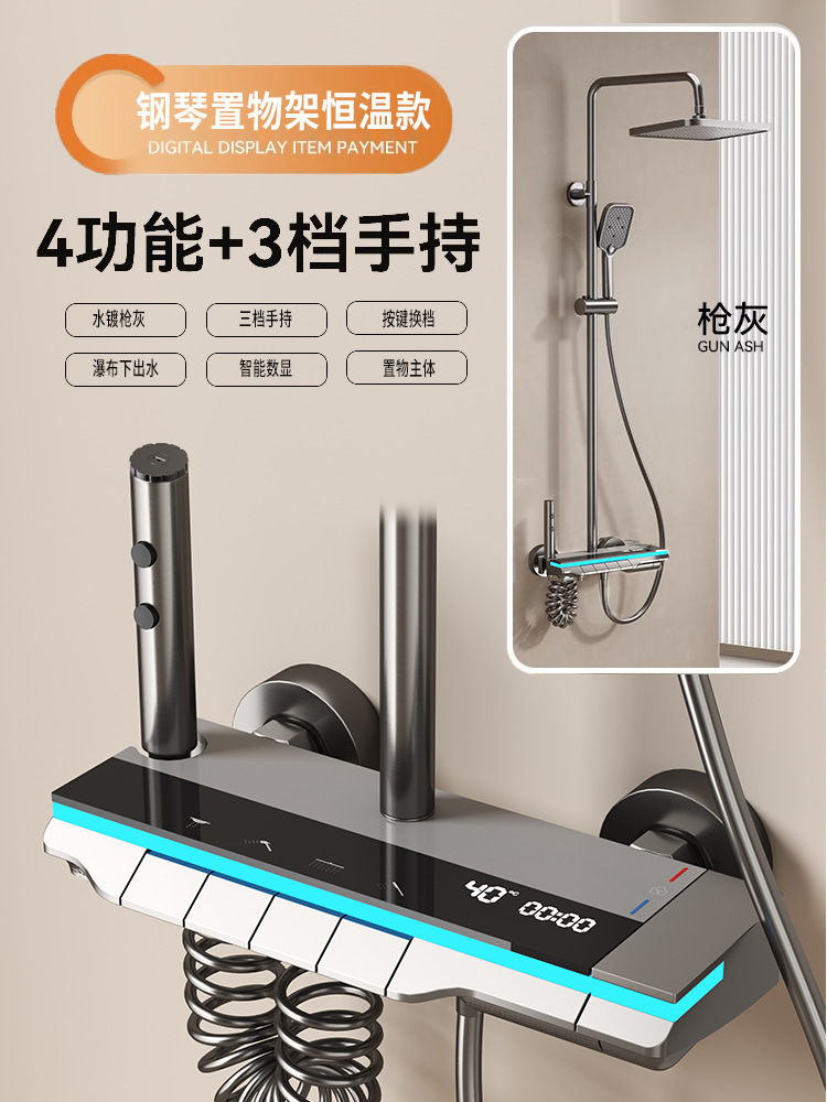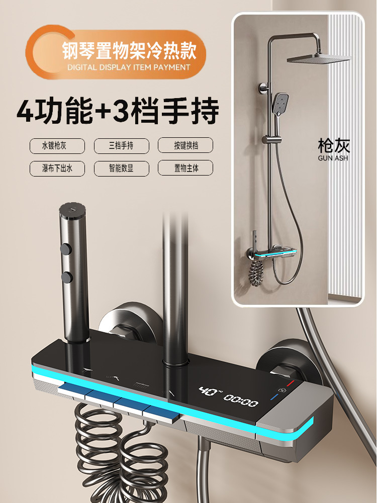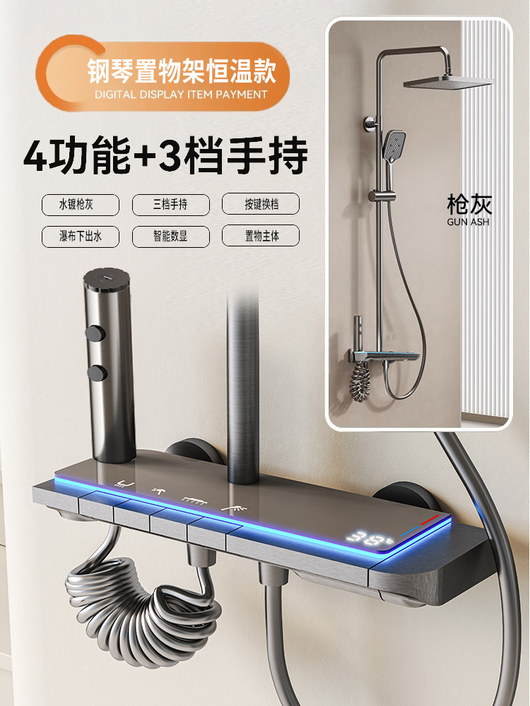 새로운 일정한 온도 디지털 디스플레이 분위기 램프 가정용 욕실 샤워 부스터 샤워 화장실 세트 구리 피아노 도매로스토어 가기