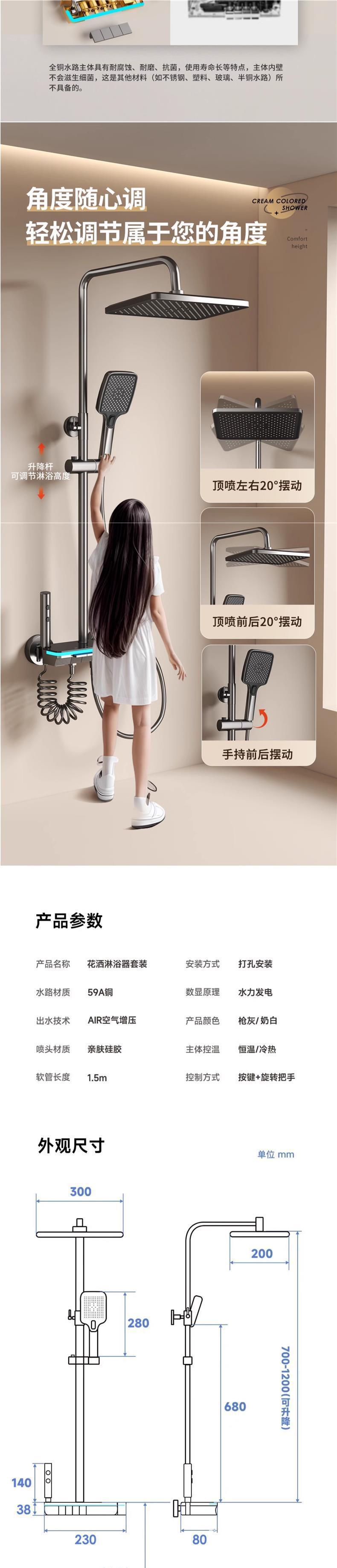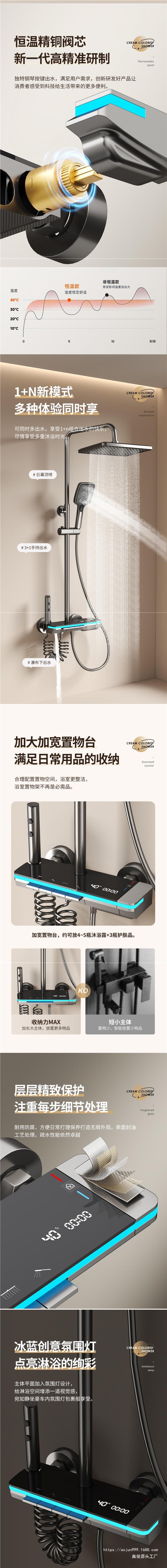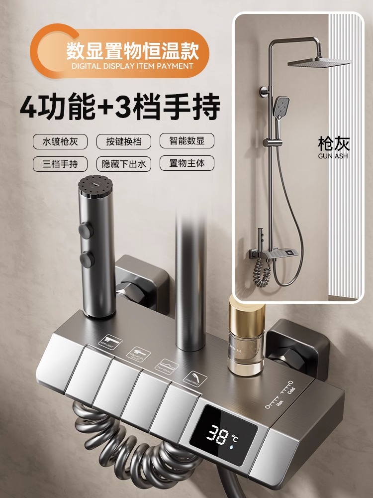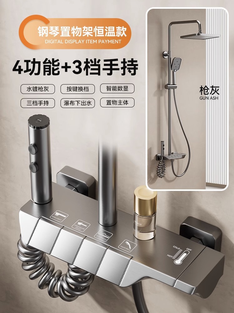 새로운 일정한 온도 디지털 디스플레이 분위기 램프 가정용 욕실 샤워 부스터 샤워 화장실 세트 구리 피아노 도매로스토어 가기