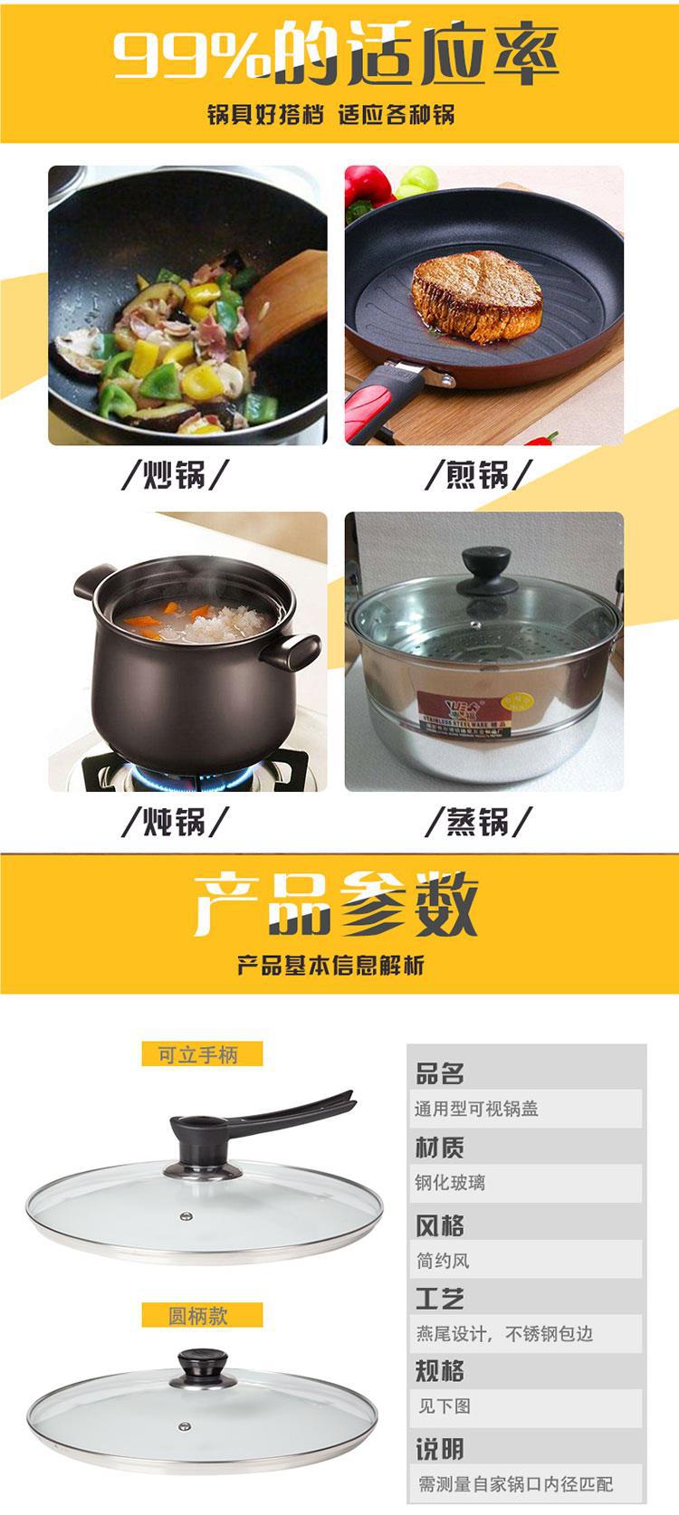 투명한 두꺼운 강화 유리 냄비 뚜껑 유도 쿠커 볶음 냄비 수프 냄비 유리 뚜껑 G 자형 뚜껑스토어 가기