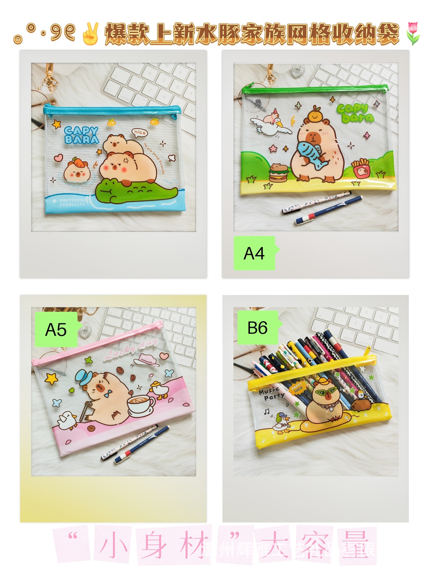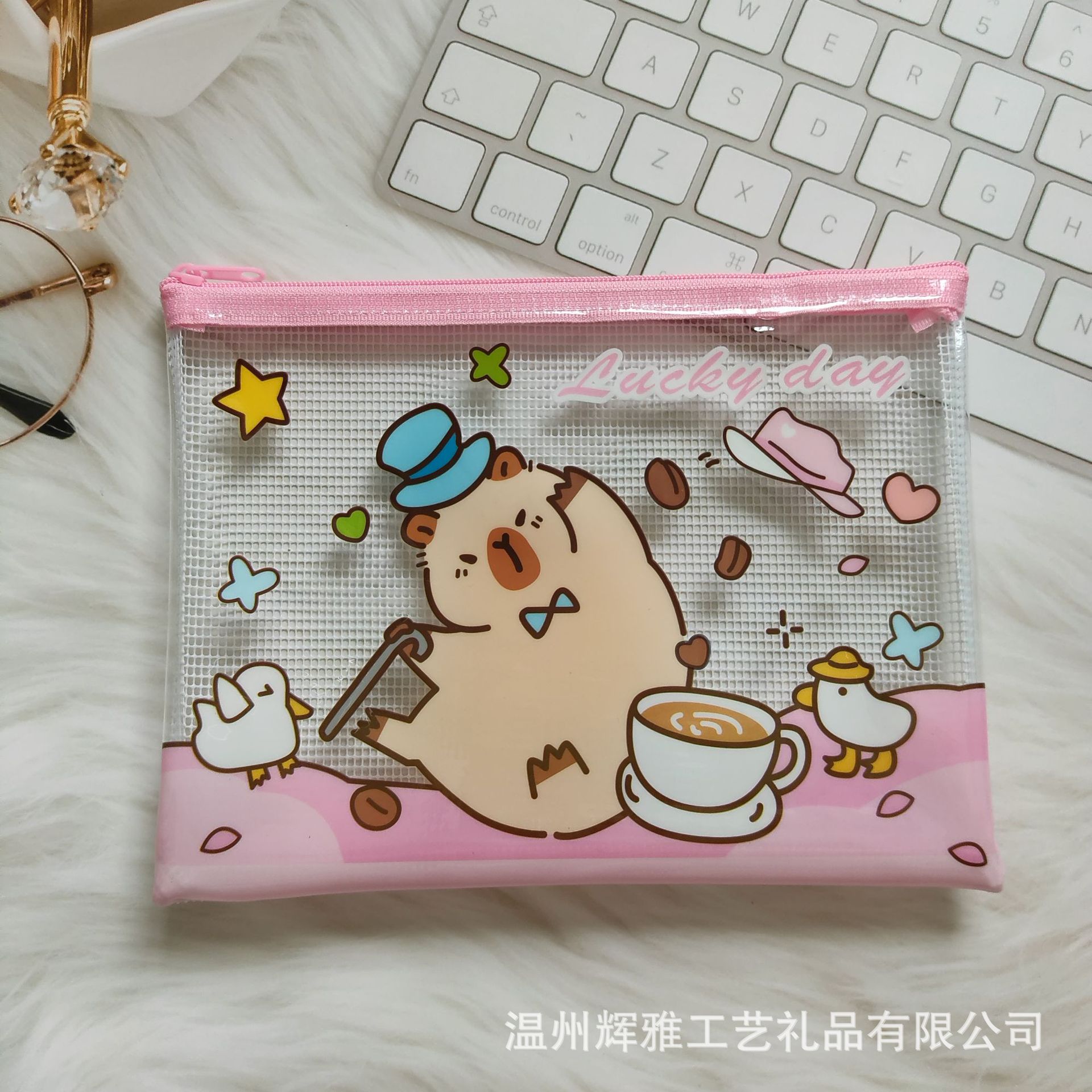 카피발라 투명 필통 수피카니타 PVC 메쉬 필통 수납 가방 파일 가방 만화 방수 지퍼 가방스토어 가기