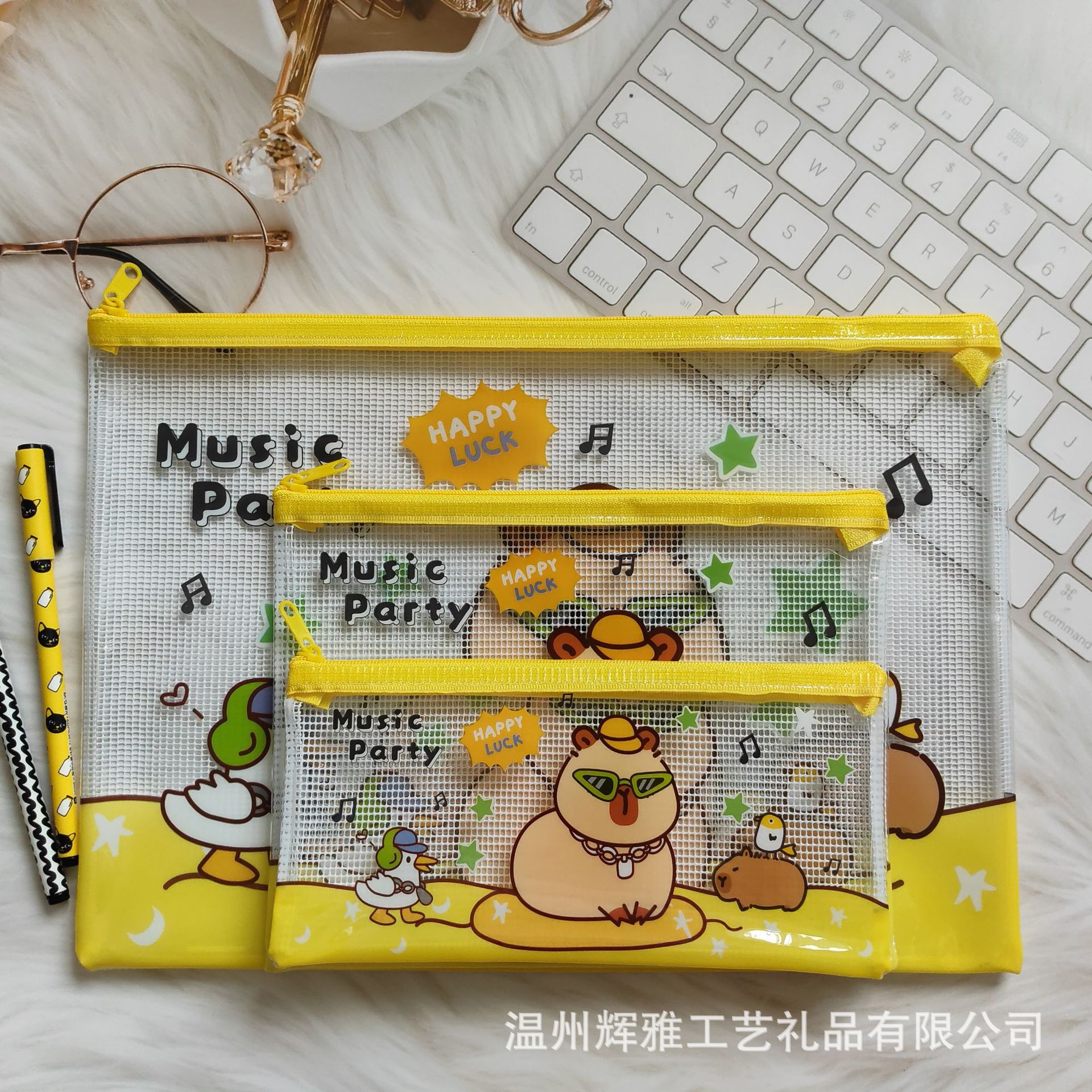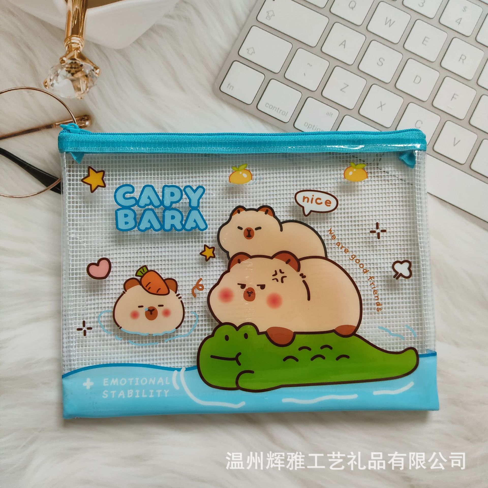 카피발라 투명 필통 수피카니타 PVC 메쉬 필통 수납 가방 파일 가방 만화 방수 지퍼 가방