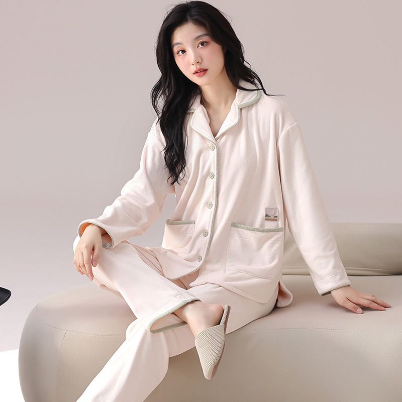 2025년 신상품 독일산 벨벳 잠옷 여성용 가을 겨울 따뜻한 단색 심플 캐주얼 외출 가능 홈웨어 세트
