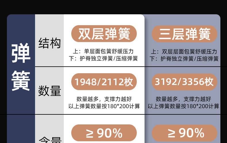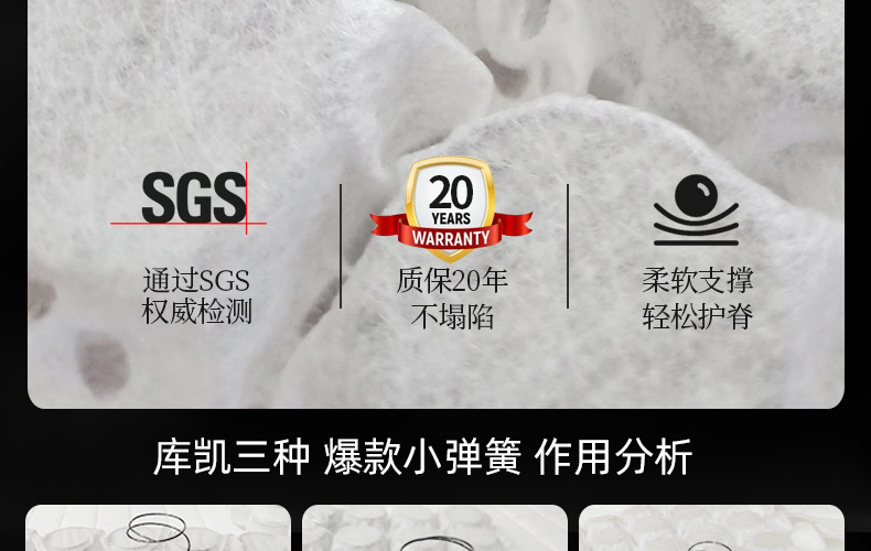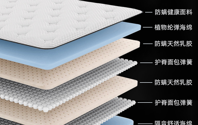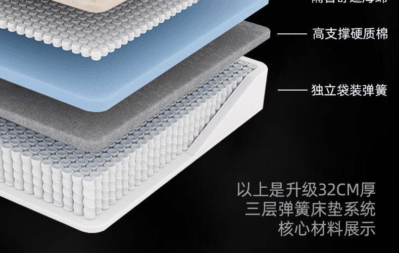 • 업그레이드된 32cm 두께/3겹 스프링 시스템: 진드기 방지 직물+라텍스+빵 스프링+라텍스+빵 스프링+스펀지+암호화된 단일 백 스프링+하드 코튼+3D