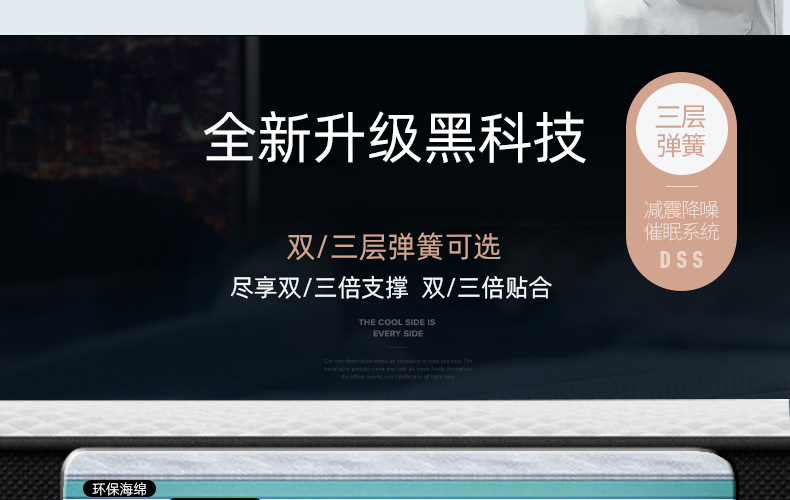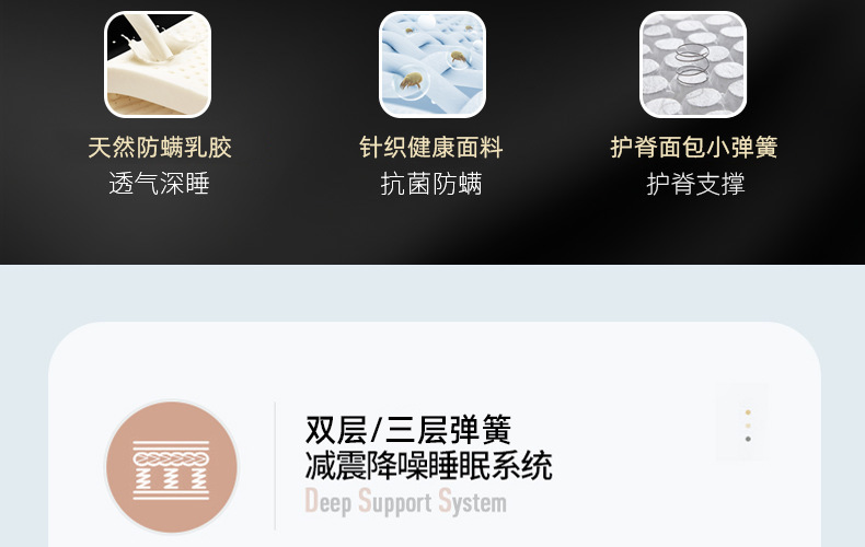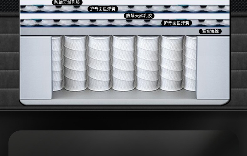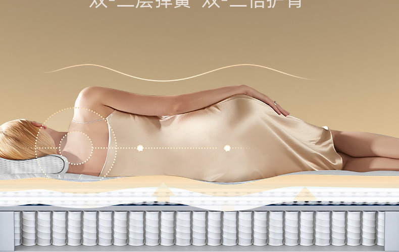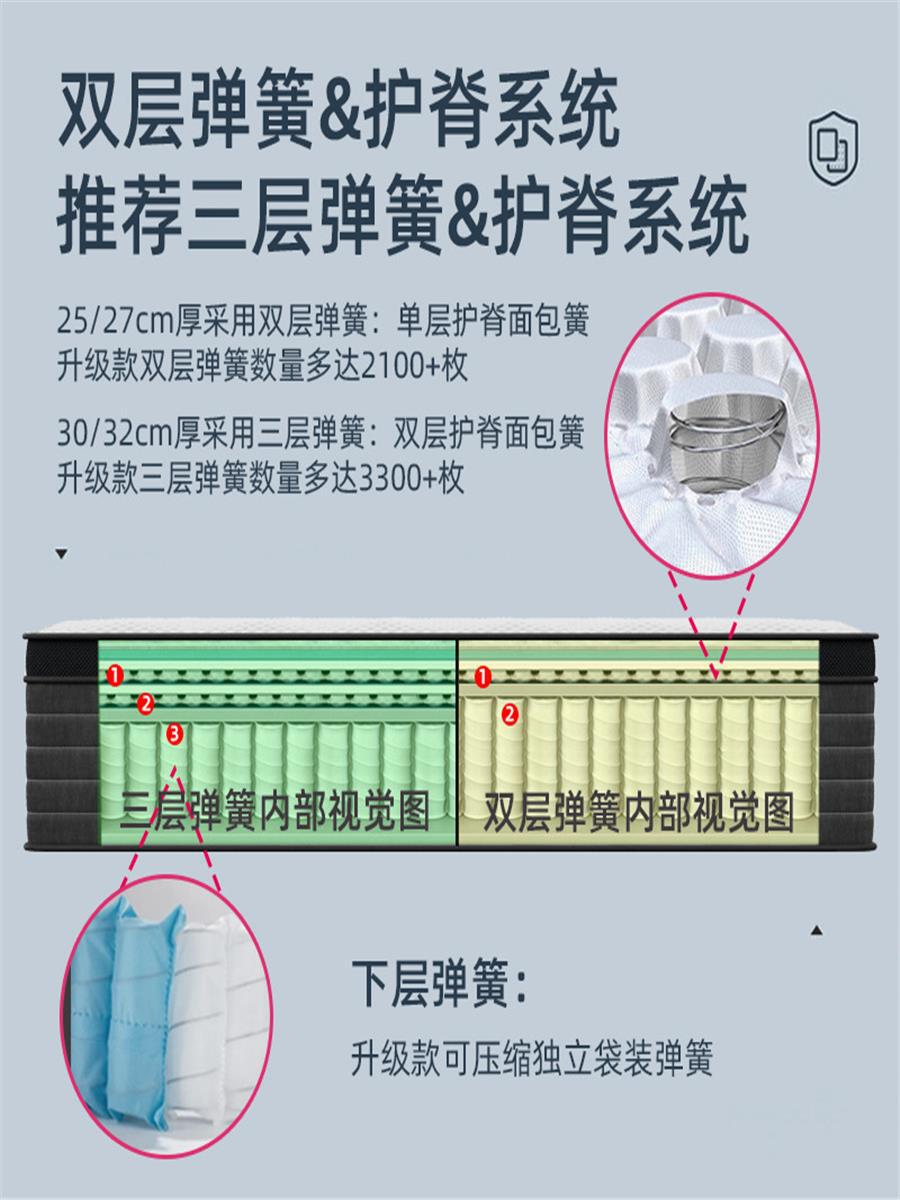 • 업그레이드된 25cm 두께/이중 스프링 시스템: 진드기 방지 원단 + 천연 라텍스 + 3.5cm 빵 스프링 + 암호화된 독립 포켓 스프링 + 하드 코튼 + 3D
