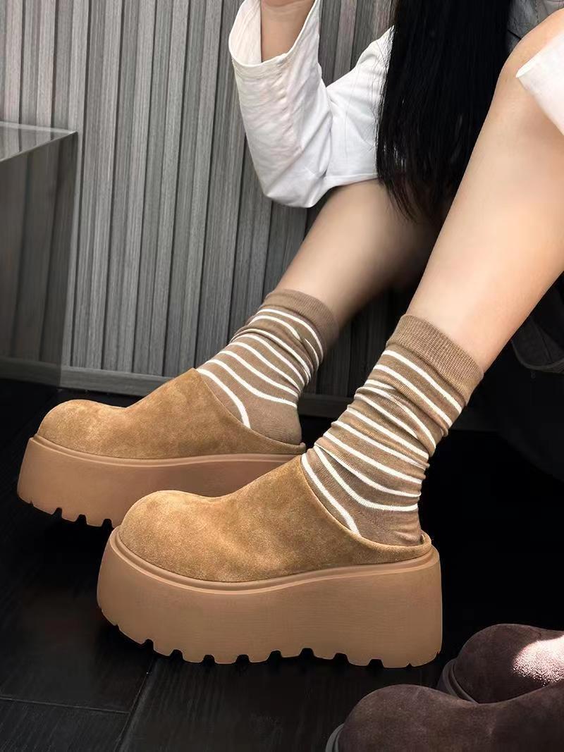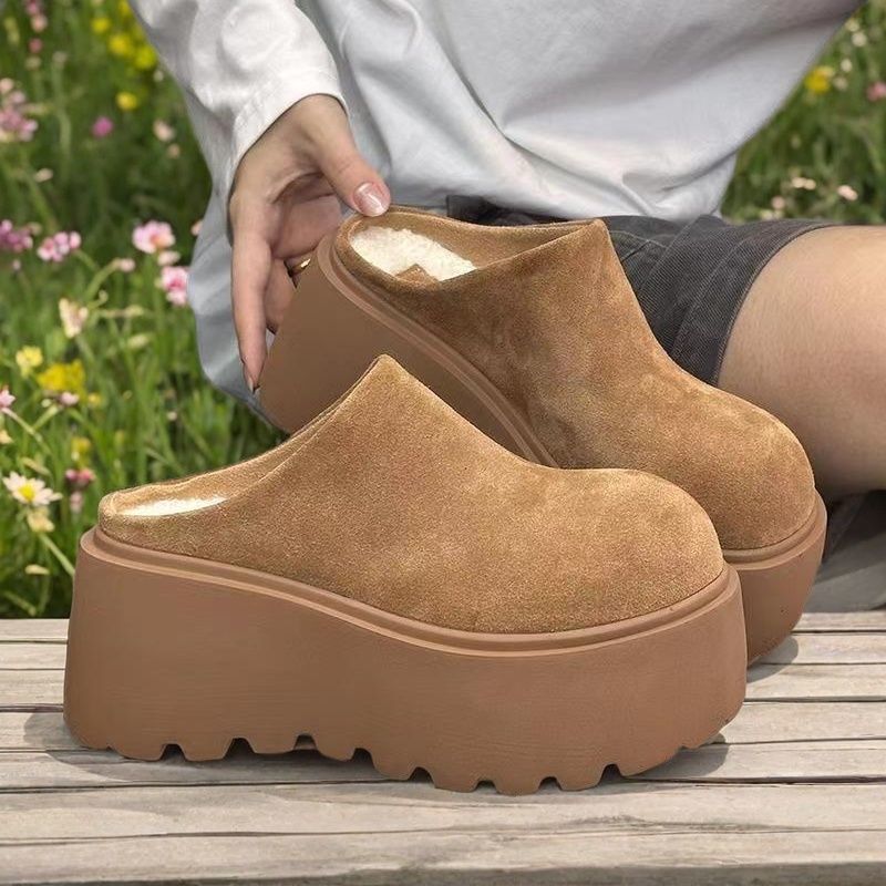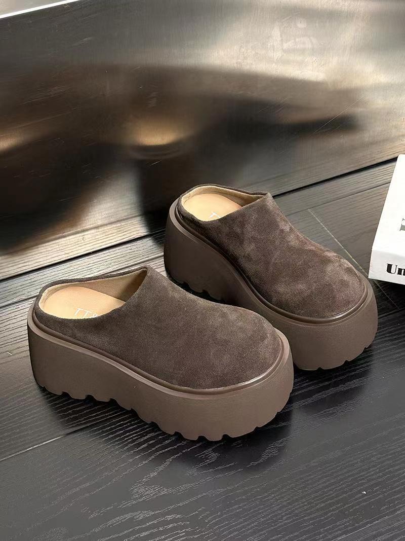 싱글 릴리 릴리 패션 캐주얼 바오터우 슬리퍼 소프트 가죽 두꺼운 단독 증가 빵 슬리퍼 여성 신발 유행 2024 가을 뉴