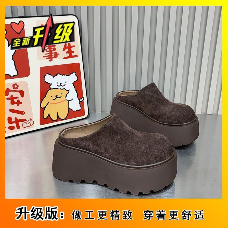 싱글 릴리 릴리 패션 캐주얼 바오터우 슬리퍼 소프트 가죽 두꺼운 단독 증가 빵 슬리퍼 여성 신발 유행 2024 가을 뉴스토어 가기