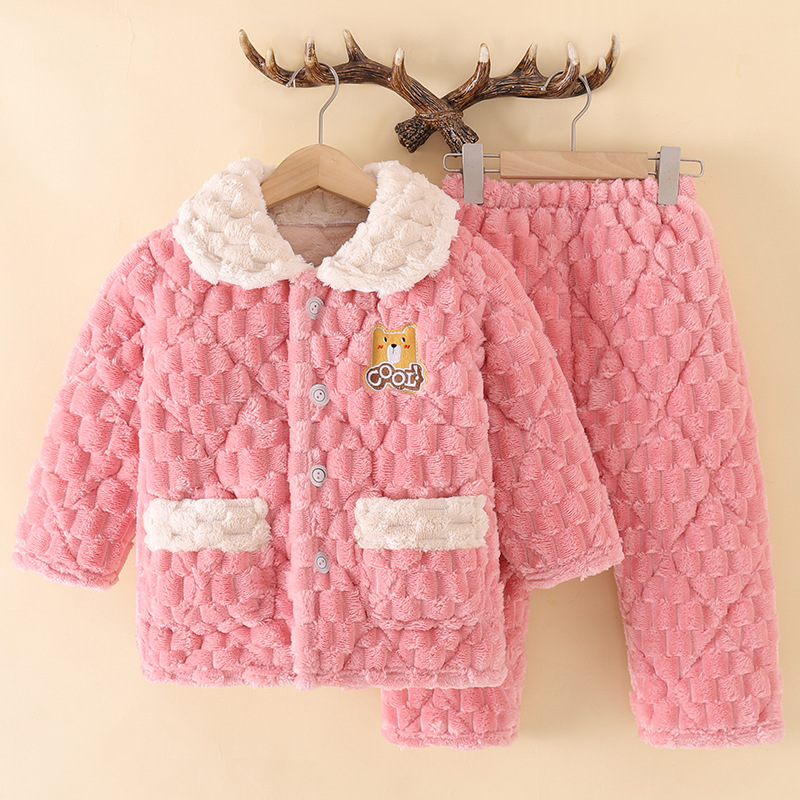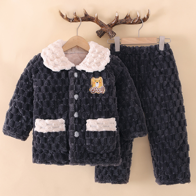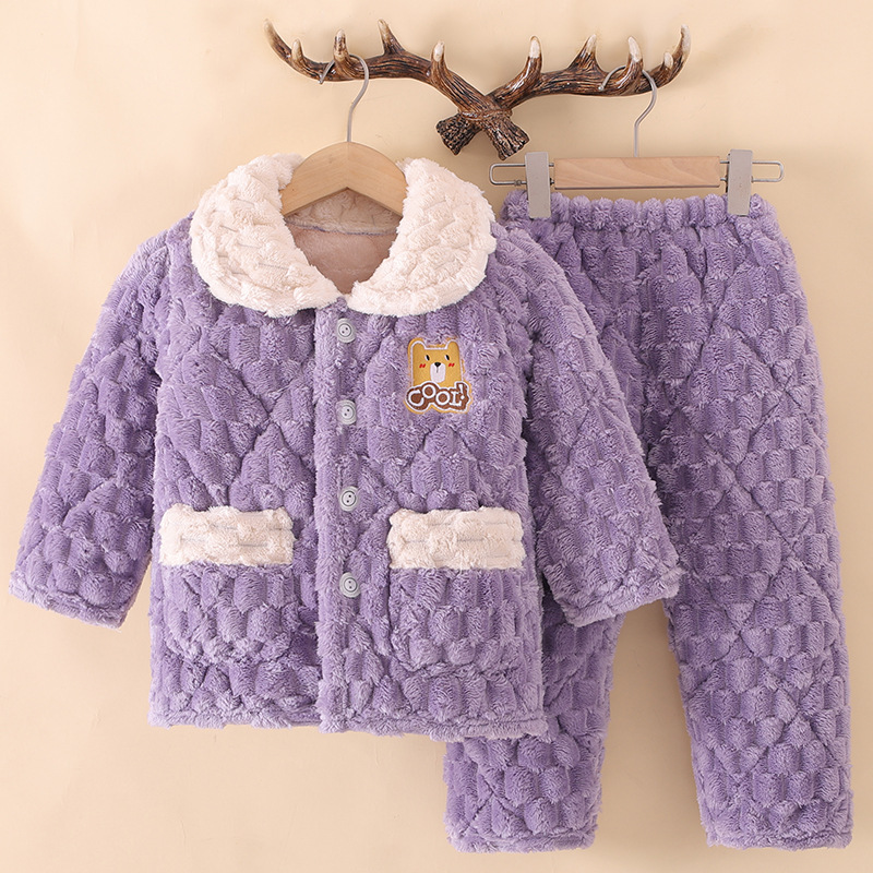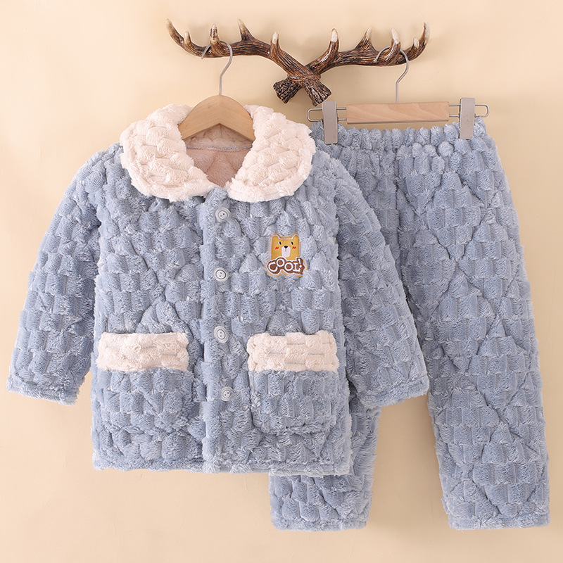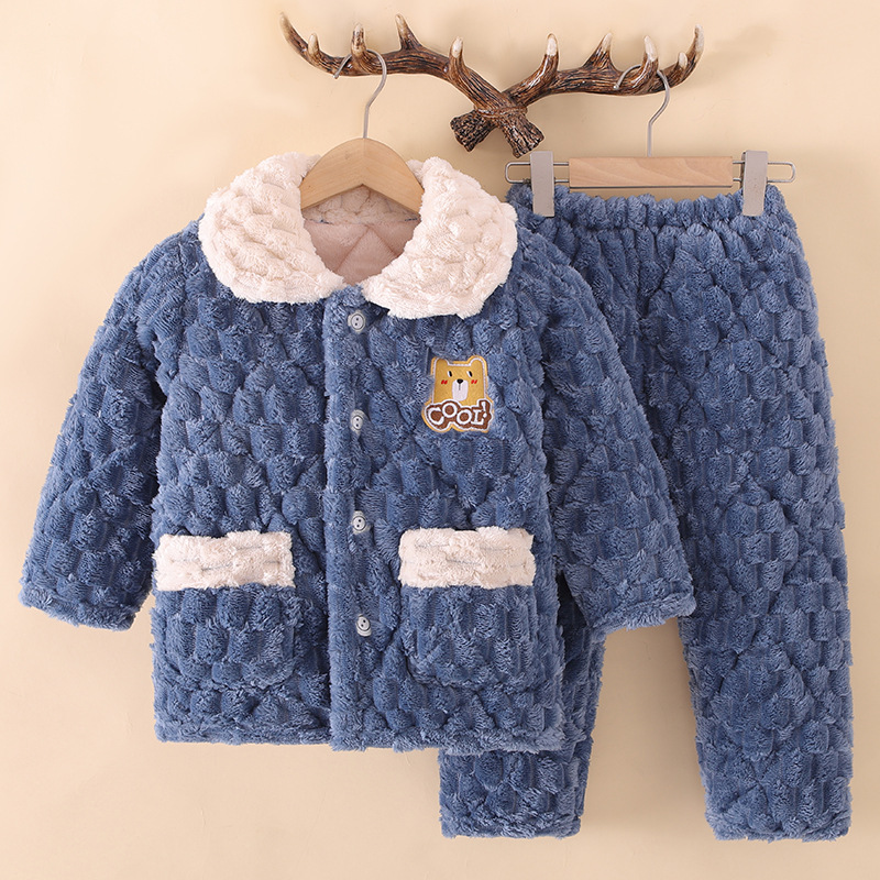 가을과 겨울 어린이 3 층 면 플란넬 아기 소년과 소년을위한 산호 양털 잠옷 따뜻한 두꺼운 홈 옷