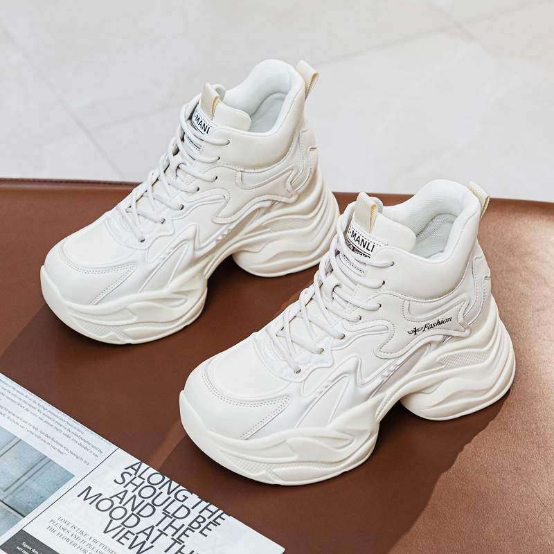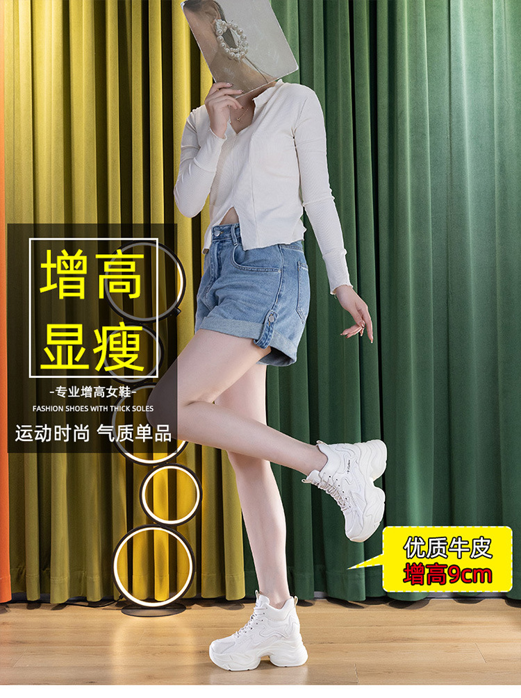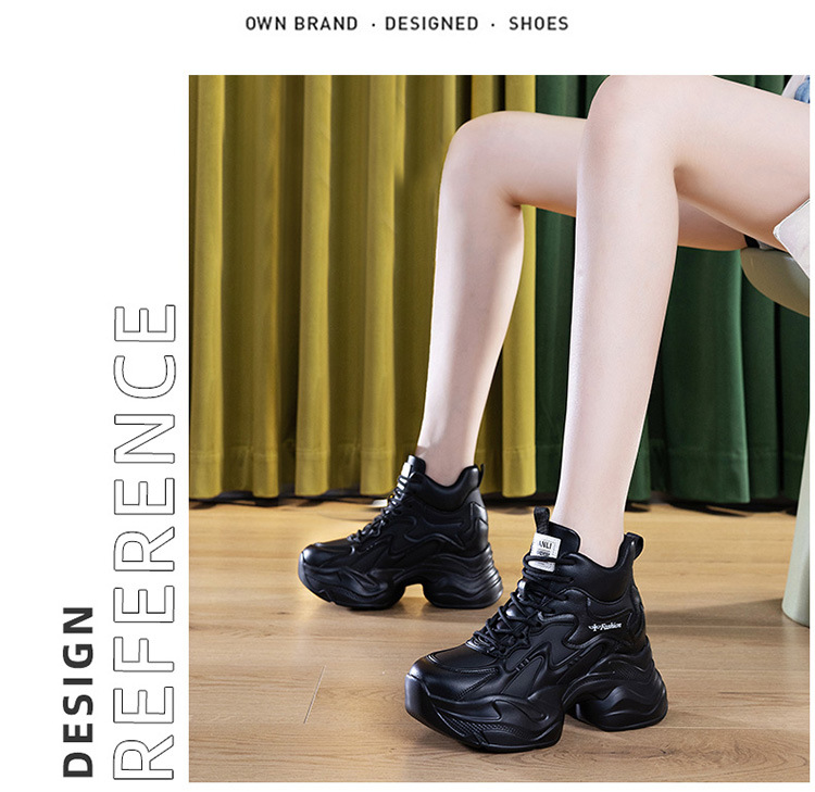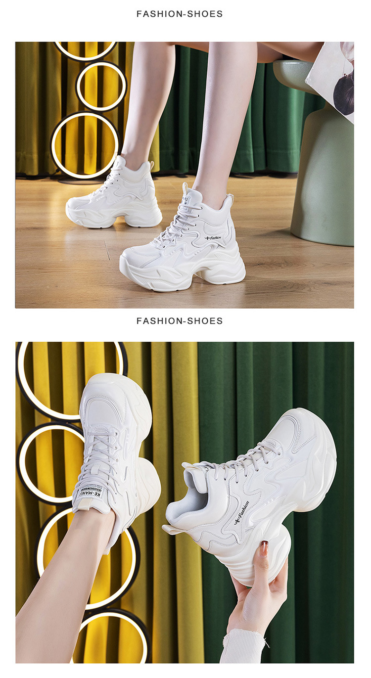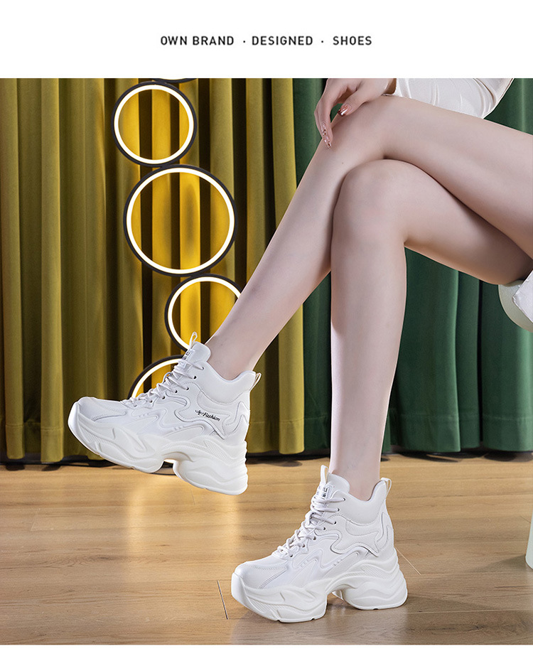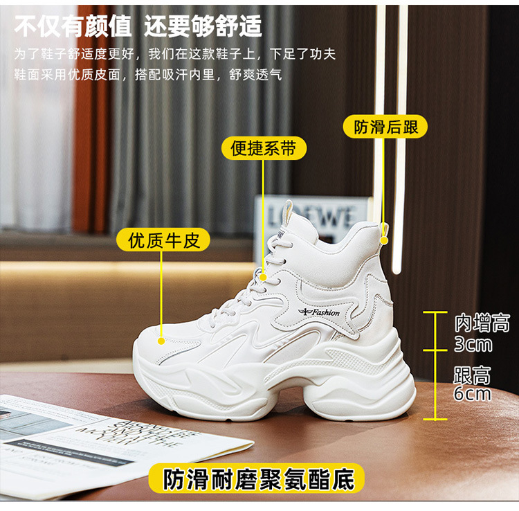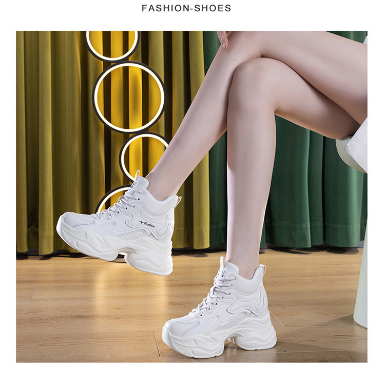 2024 여성 신발 새로운 두꺼운 단독 높이 증가 9cm 캐주얼 토레 신발 작은 흰색 신발 웨지 플랫폼 신발 트렌디스토어 가기