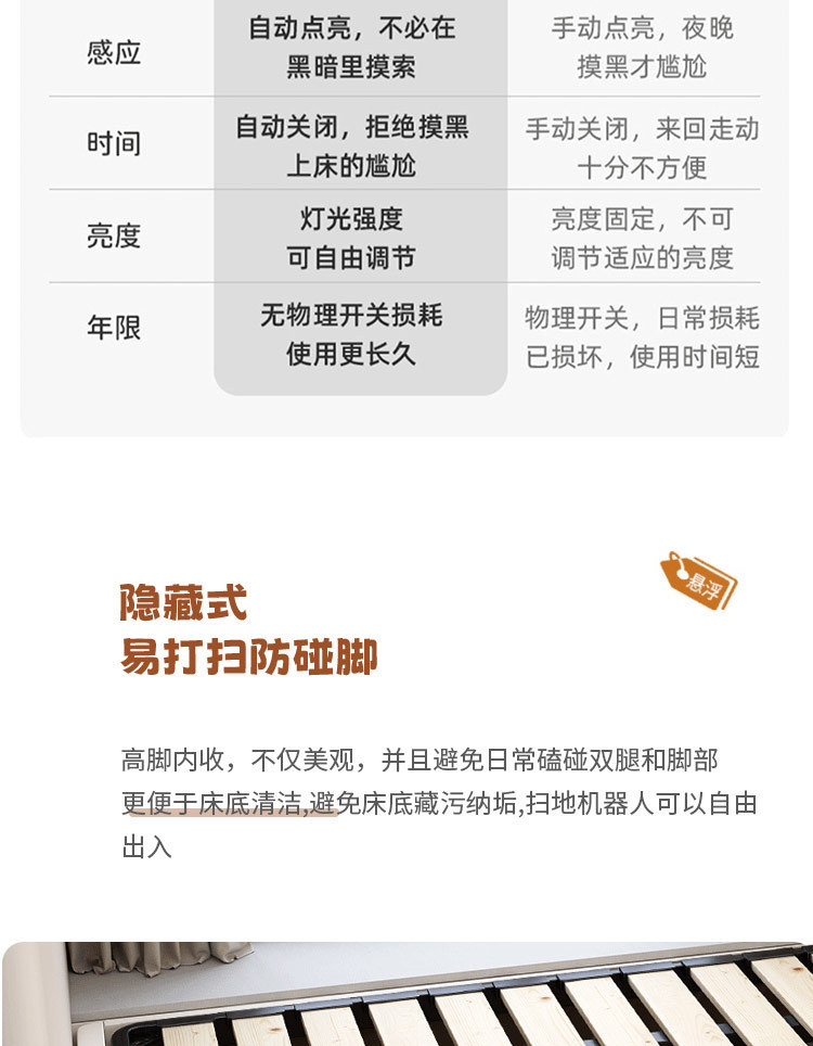 • 서스펜션 침대 프레임(센서 조명 포함)