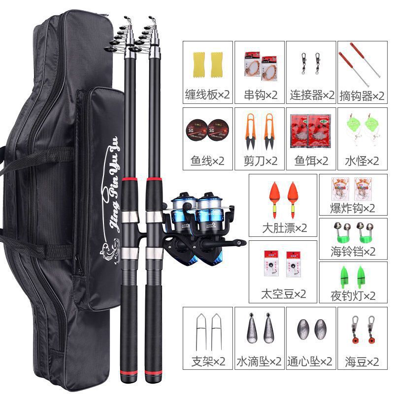 • [낚싯대 2세트] + 선물가방 + 낚싯대가방 + 낚시대 + 복사망 - 2.4m +14축 5000【