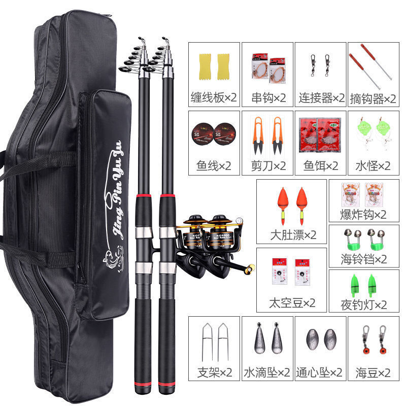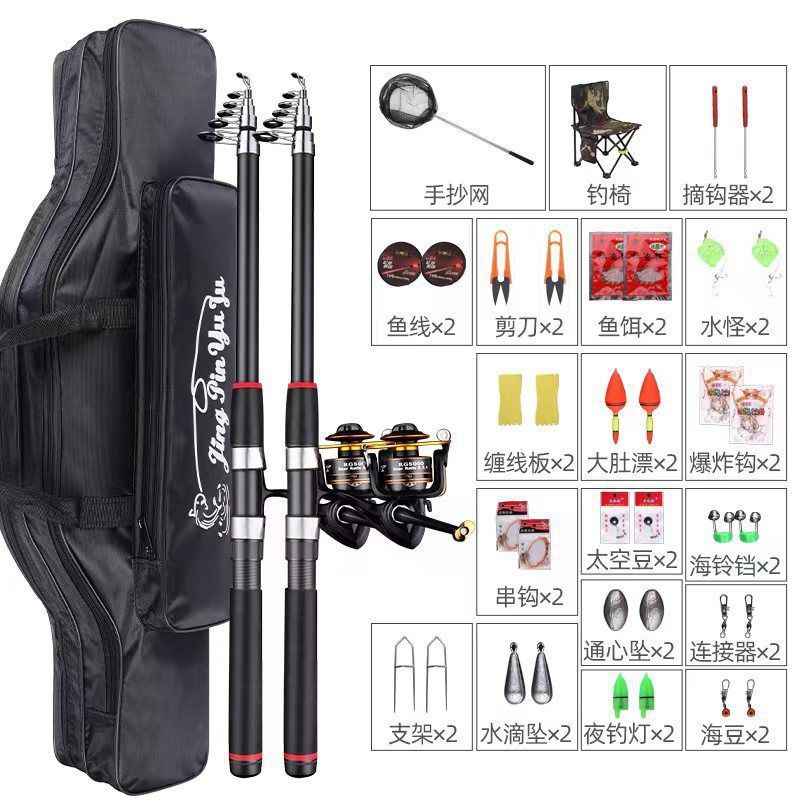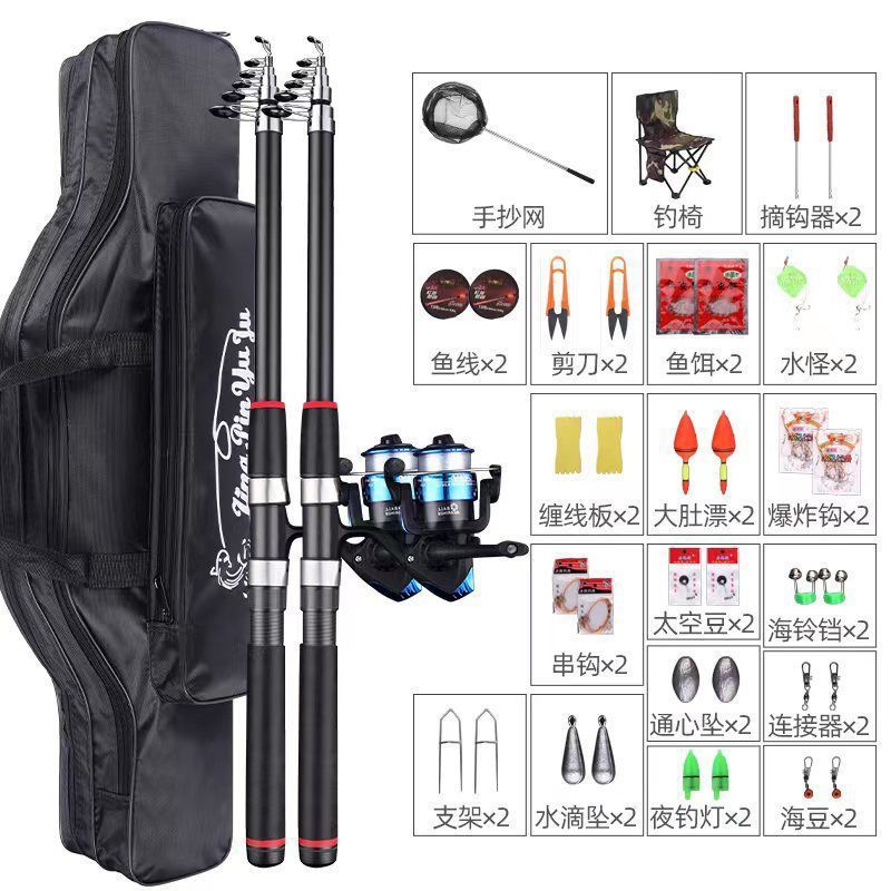• [낚싯대 2세트] + 선물가방 + 낚싯대가방 + 낚시대 + 복사망 - 2.7m +14축 5000【
