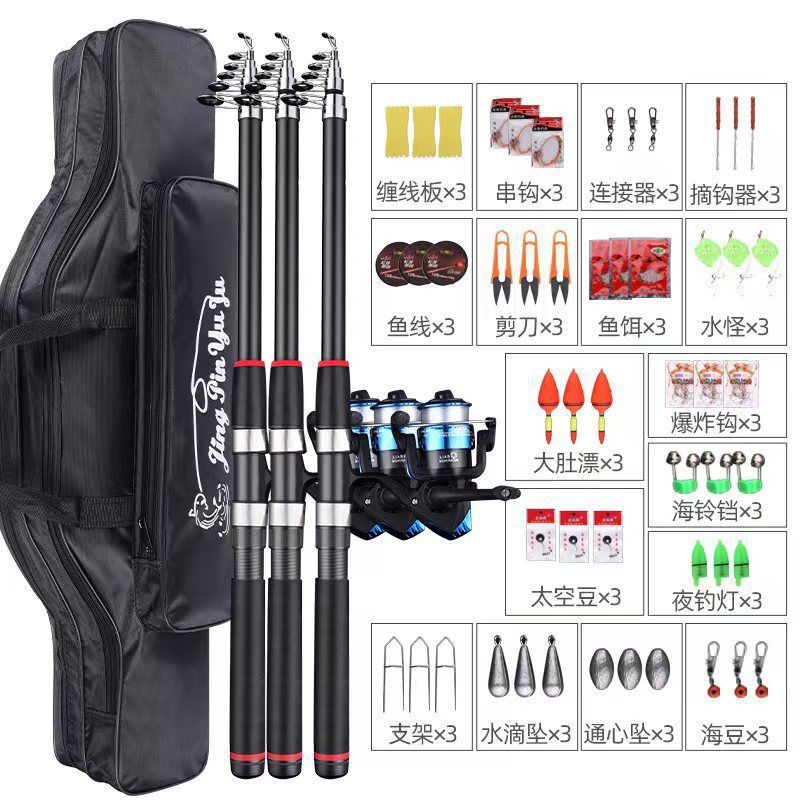 • [낚싯대 3세트] + 선물가방 + 낚싯대가방 + 낚시대 + 복사망 - 2.7m +14축 5000【