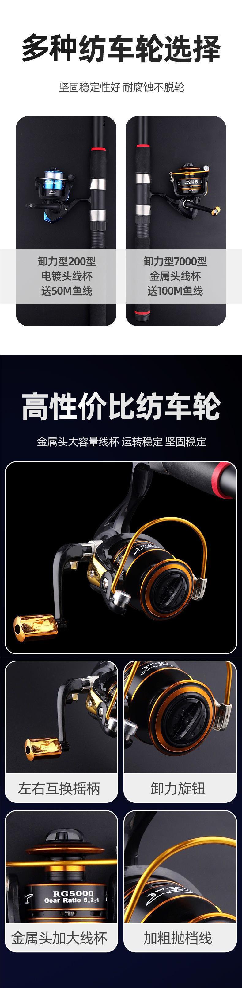 • [낚싯대 3세트] + 선물 가방 + 낚싯대 가방 - 2.1m +10축 4000형 플라스틱 바퀴