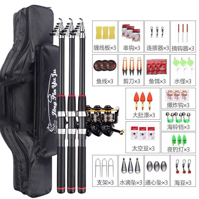 • [낚싯대 3세트] + 선물가방 + 낚싯대가방 + 낚시대 + 복사망 - 2.4m +14축 5000【