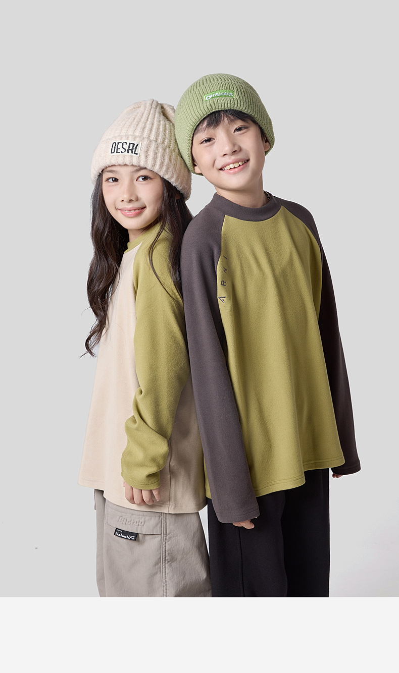 24 가을/겨울 소년과 소녀 티셔츠 더블 컬러 어깨 따뜻한 탑 코코넛 양털 자체 가열 세미 하이 칼라 아동베이스 셔츠스토어 가기