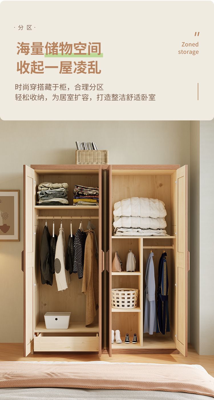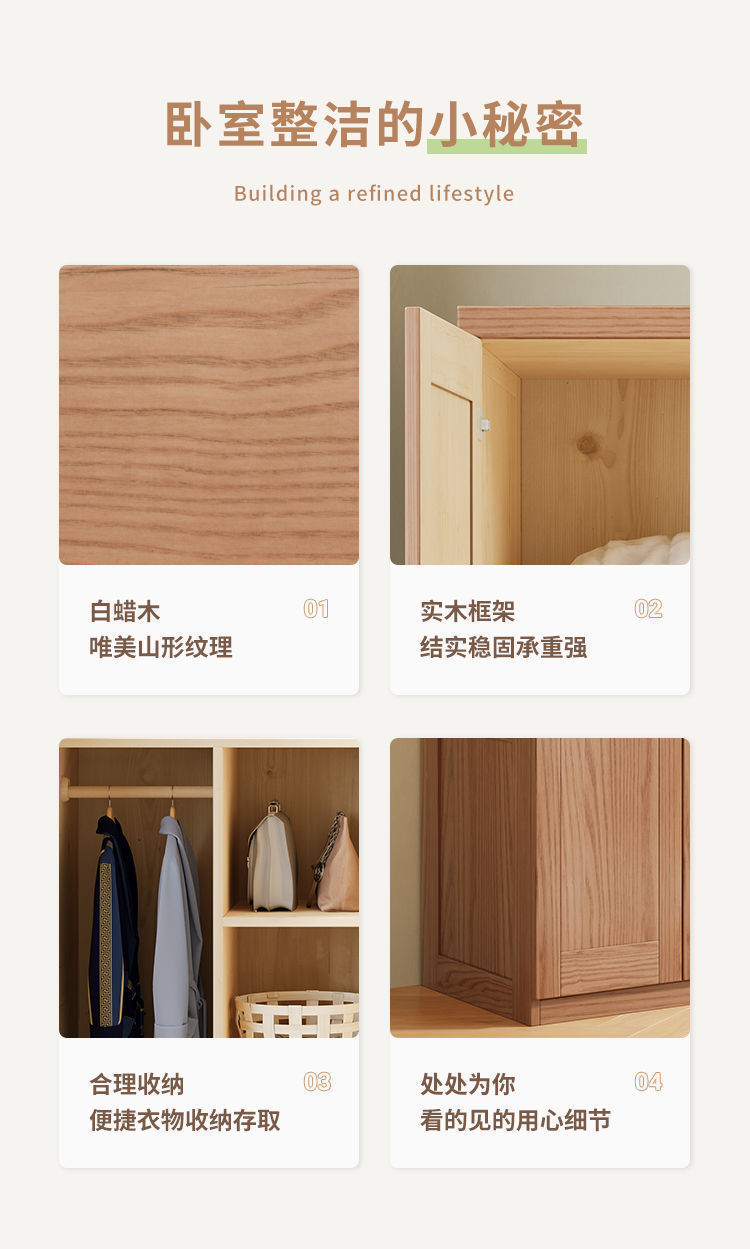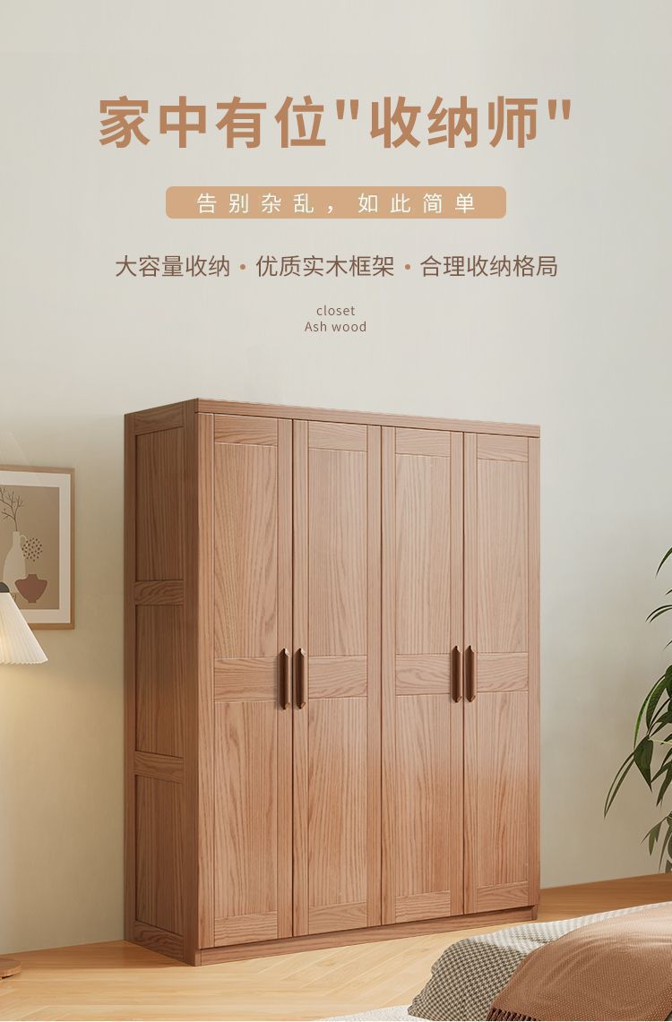 애쉬 옷장 침실 홈 홈스테이 대형 옷장 현대 간단한 보관 캐비닛 솔리드 우드 플랫 도어 옷장