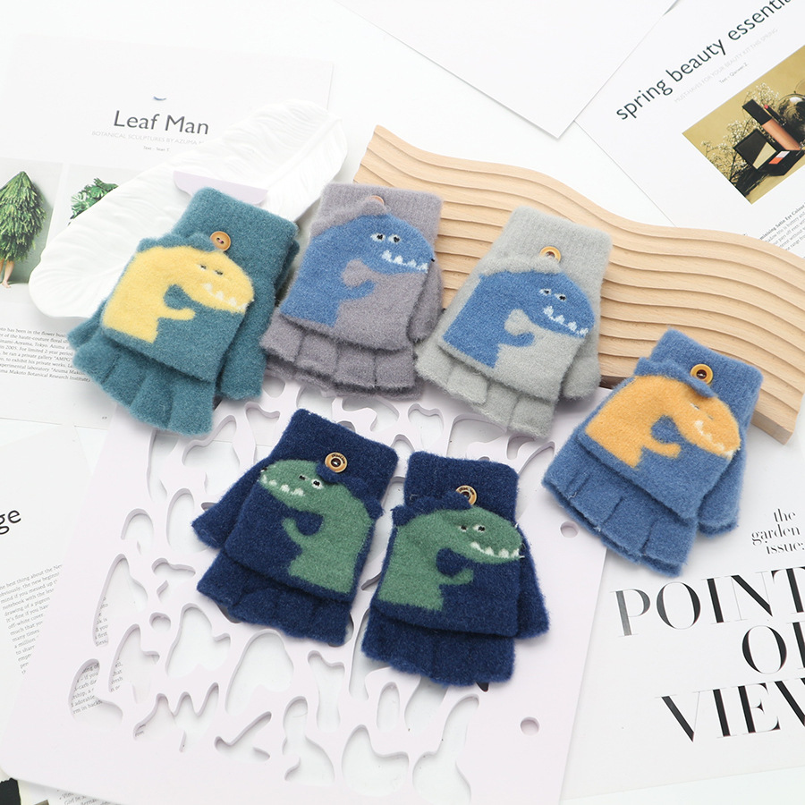 어린이 장갑 가을과 겨울 따뜻한 반 손가락 플립 만화 귀여운 니트 엑스트라 핑거 베이비 기모 소년과 소녀를 위해 두껍게