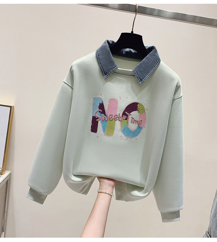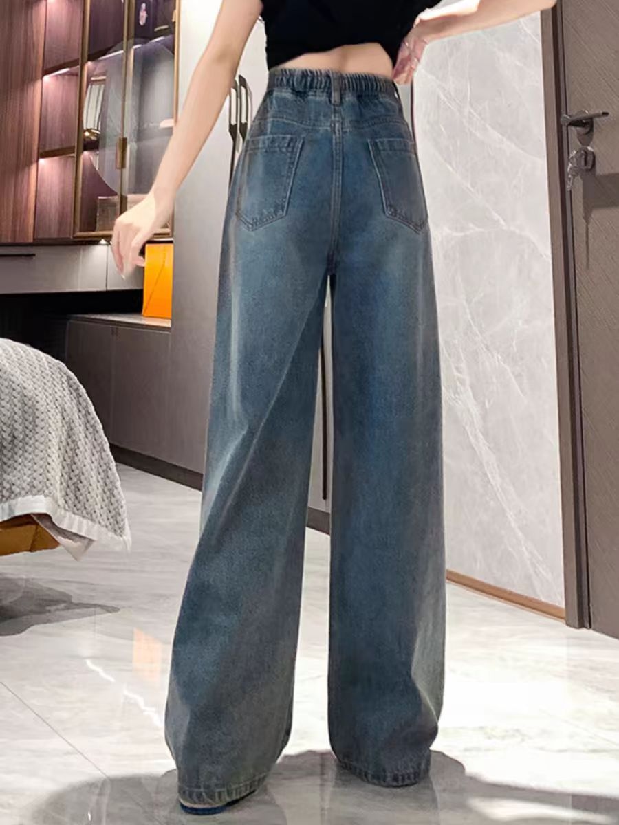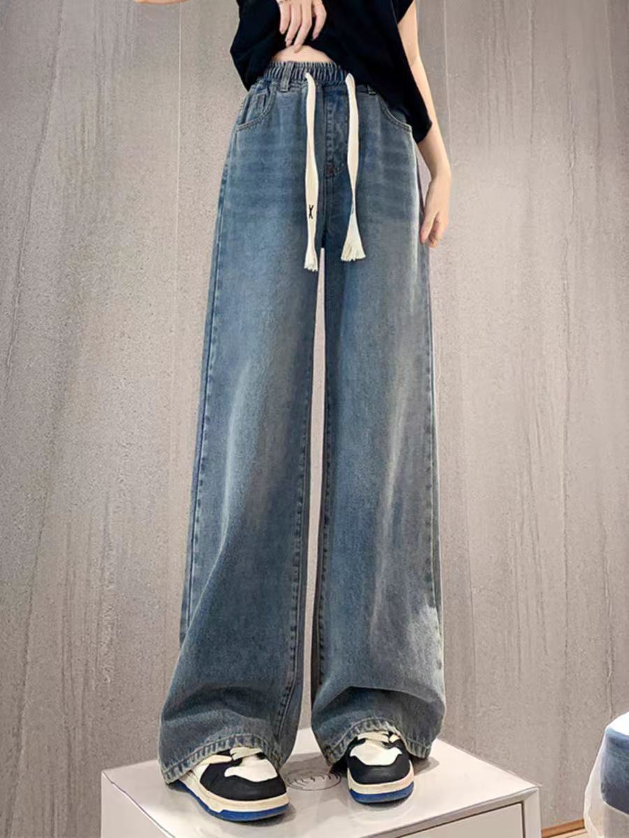데님 세트 # 데님 스티칭 스웨터는 높은 허리 슬림 넓은 다리 청바지로 2 피스 긴 슬리브 탑을 가짜로 만듭니다.스토어 가기