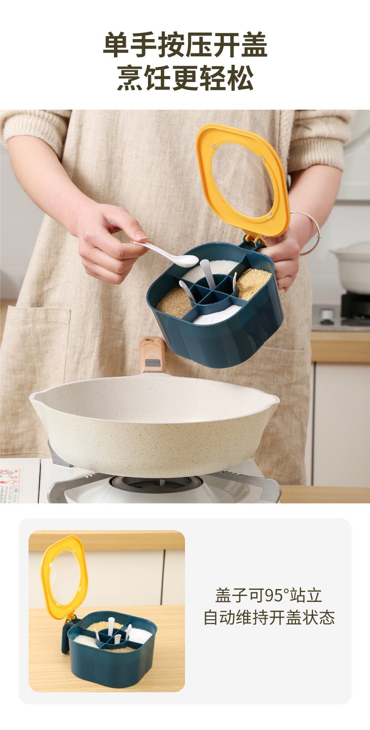 4 칸 통합 조미료 상자 세트 조합 소금 냄비 저장 설탕 MSG 가정용 주방 양념 상자 냄비 보관 양념 상자스토어 가기
