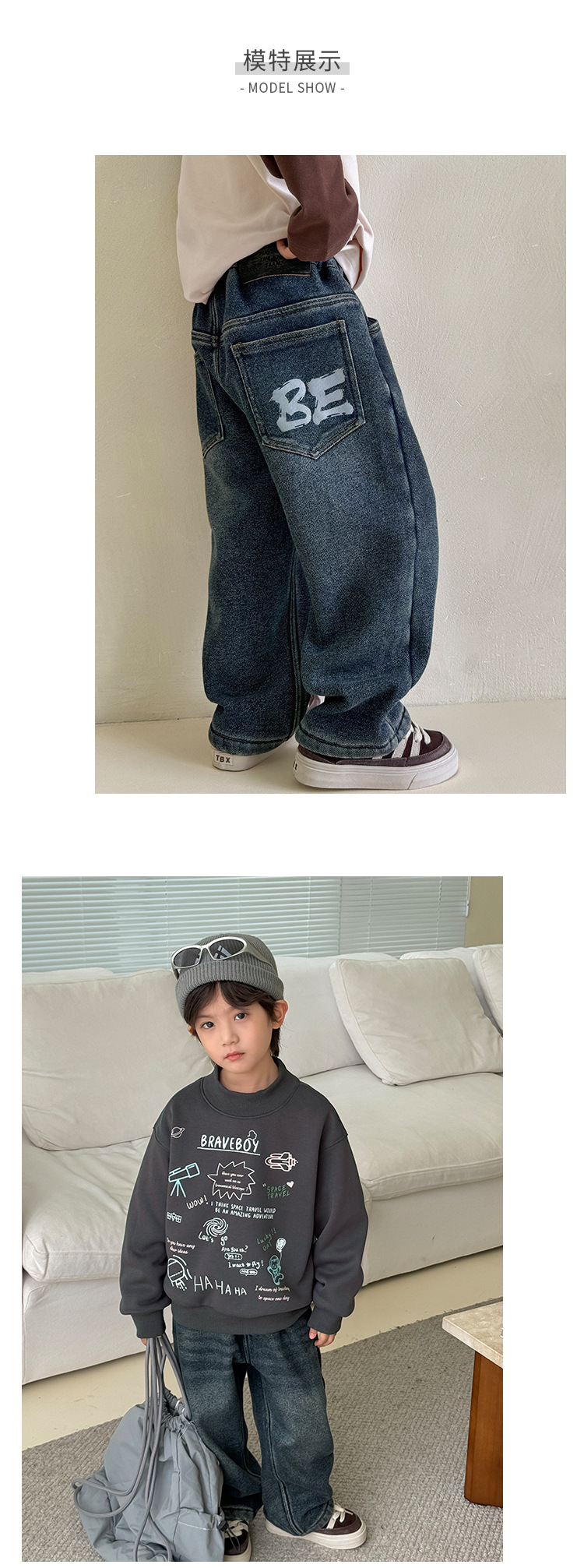 소년 양털 바지 청바지 아동 바지 가을, 겨울 아동 바지 2024 새로운 아동 의류 겨울 의류 소년 바지스토어 가기
