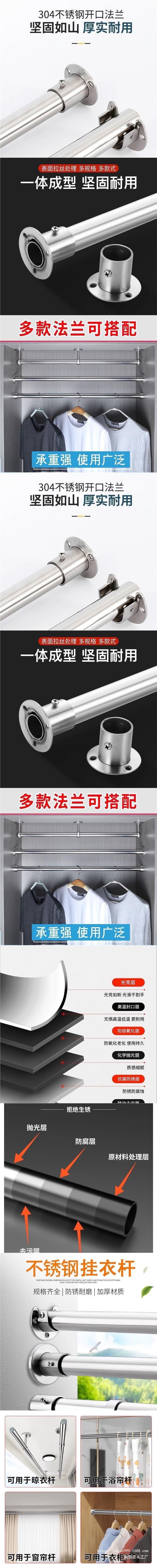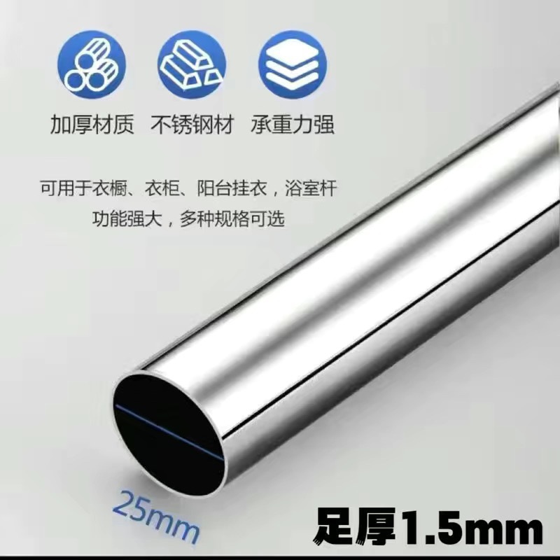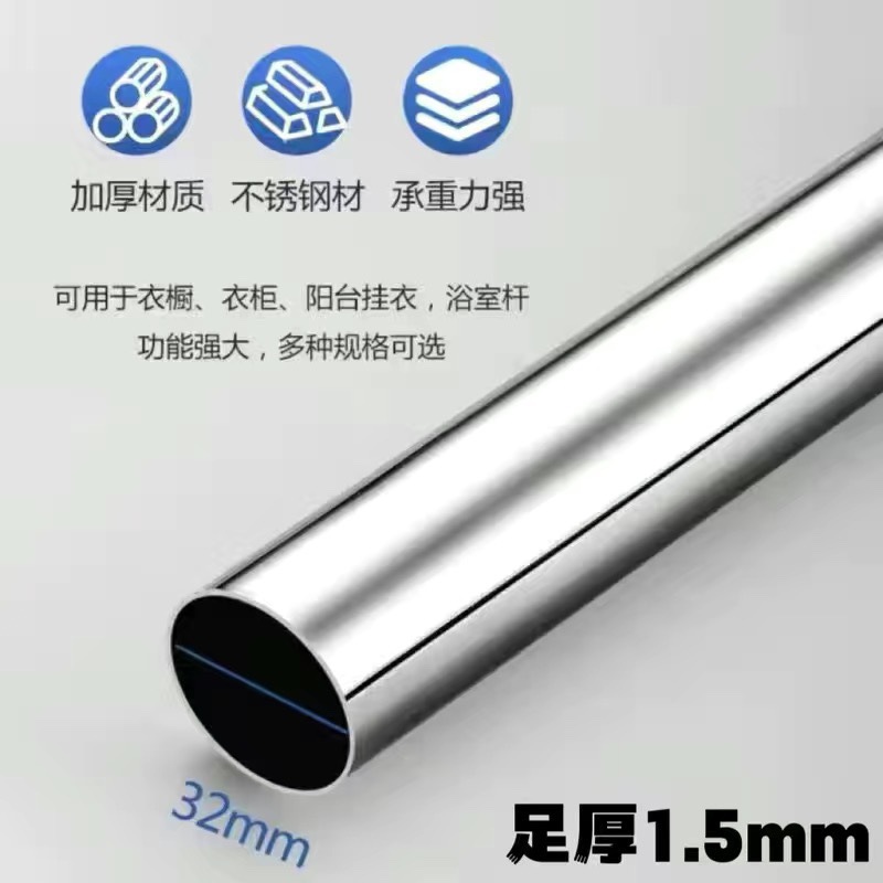 304 스테인레스 스틸 라운드 튜브 추가 두꺼운 1.5 피트 두께의 발코니 욕실 의류 폴 커튼 막대 매달려 옷 폴 옷장 도매스토어 가기