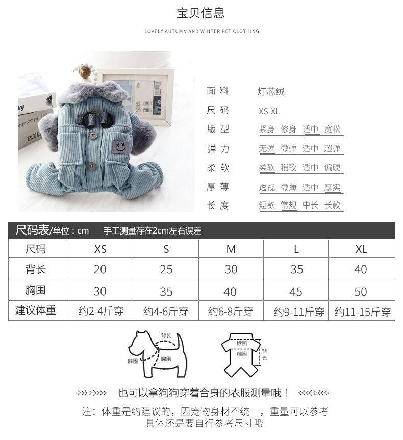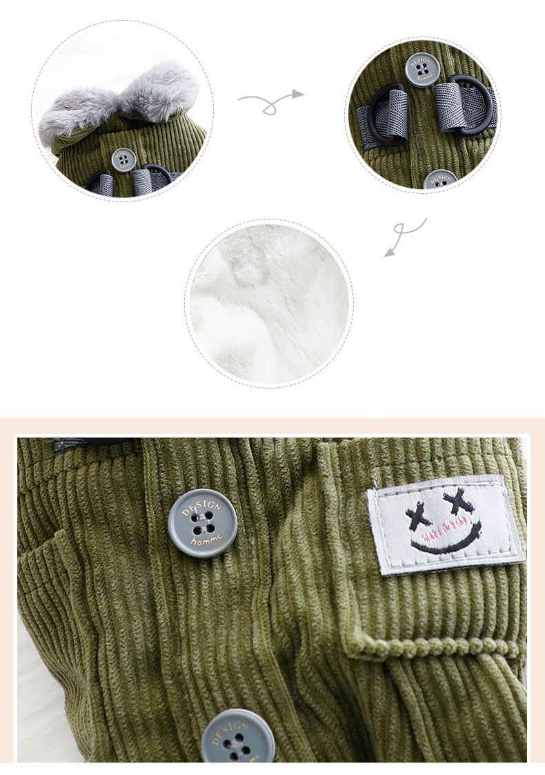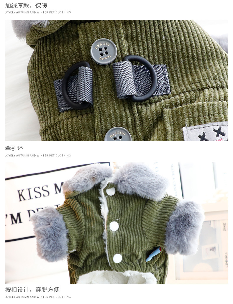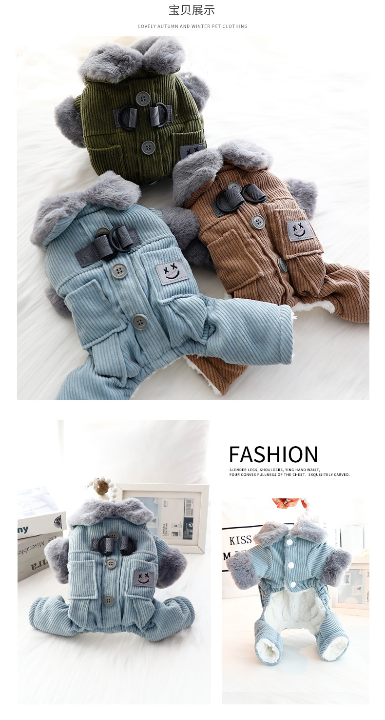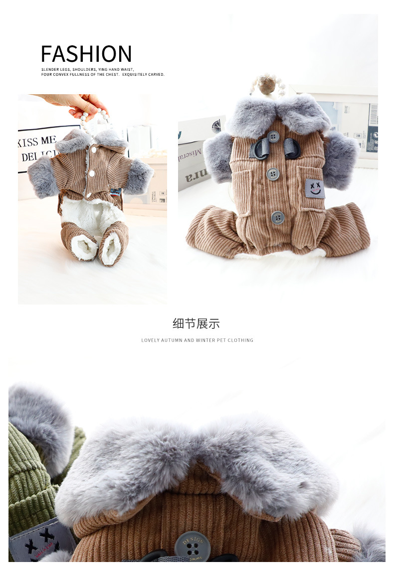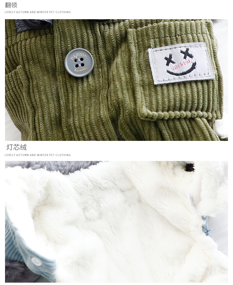 개 옷 가을과 겨울 두꺼운 광장 포켓 코듀로이 4 다리 견인 면 옷 작은 개 테디 애완 동물 6339스토어 가기