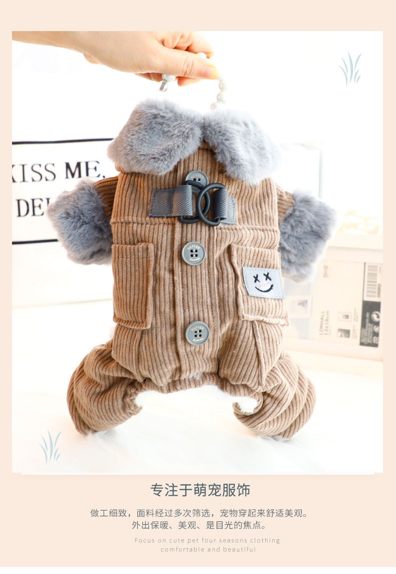 개 옷 가을과 겨울 두꺼운 광장 포켓 코듀로이 4 다리 견인 면 옷 작은 개 테디 애완 동물 6339