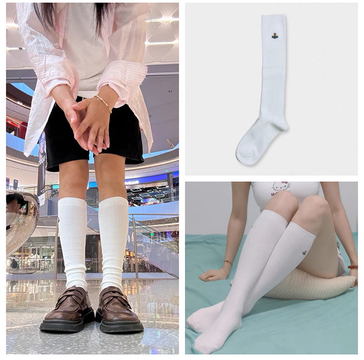 웨스트 퀸 엄마풍 토성 양말은 컬리지 스타일로 부츠와 함께 착용하면 무릎 위까지 오는 롱삭스로 봄, 가을 패션에 잘 어울립니다.