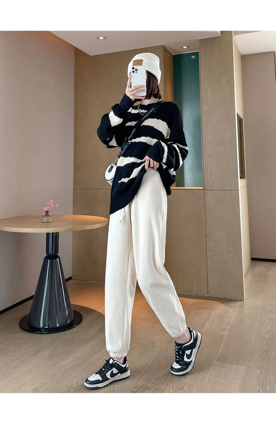 다크 그레이 다리 스포츠 바지 여자 봄 가을과 겨울 2024 새로운 느슨한 캐주얼 바지 기모 방풍 바지스토어 가기