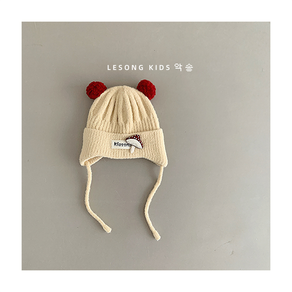 아기 모자 겨울 귀 보호 모자 귀여운 버섯 니트 귀 보호 모자 아기 따뜻한 방풍 양모 모자 한국어스토어 가기