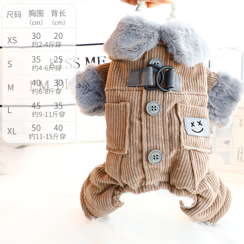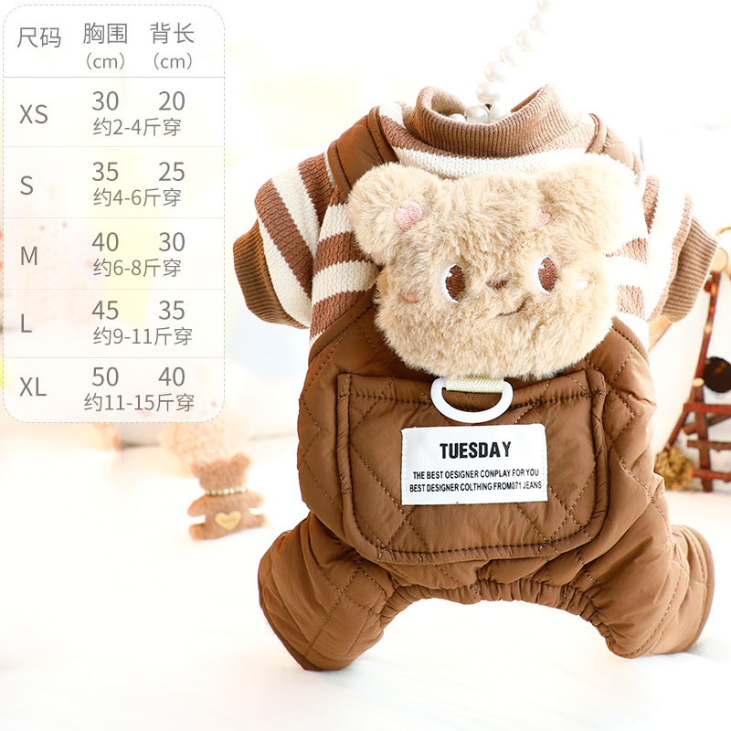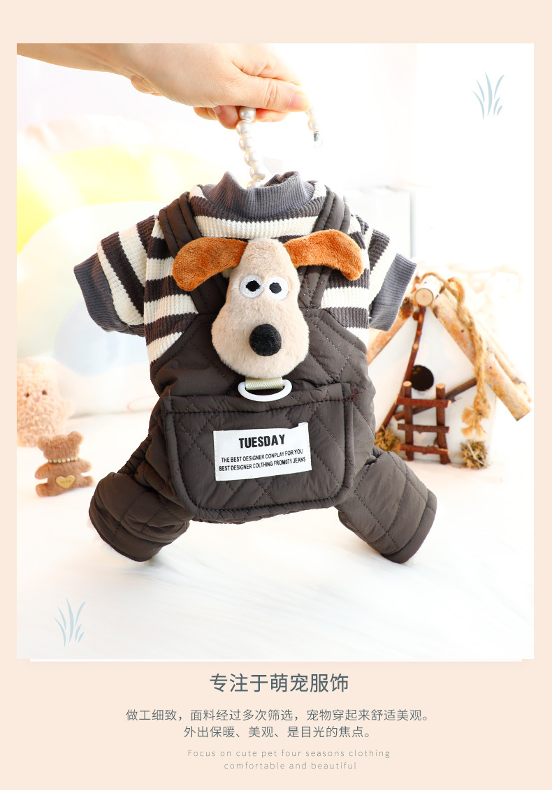 개 옷 가을과 겨울 두꺼운 큰 주머니 4 개 다리 3 차원 만화 스트랩 바지 작은 개 테디 애완 동물 6337스토어 가기