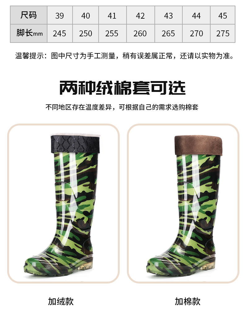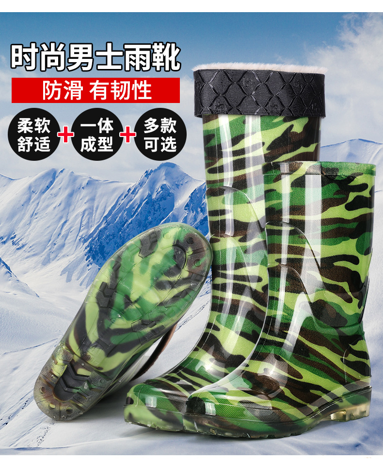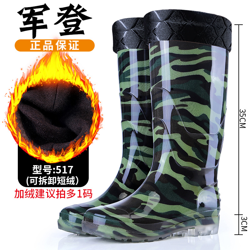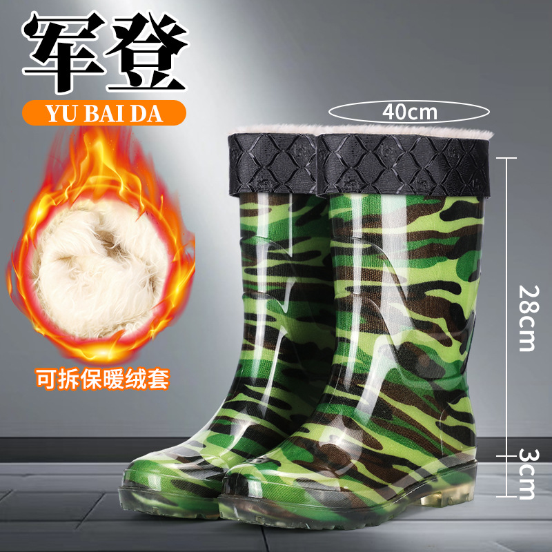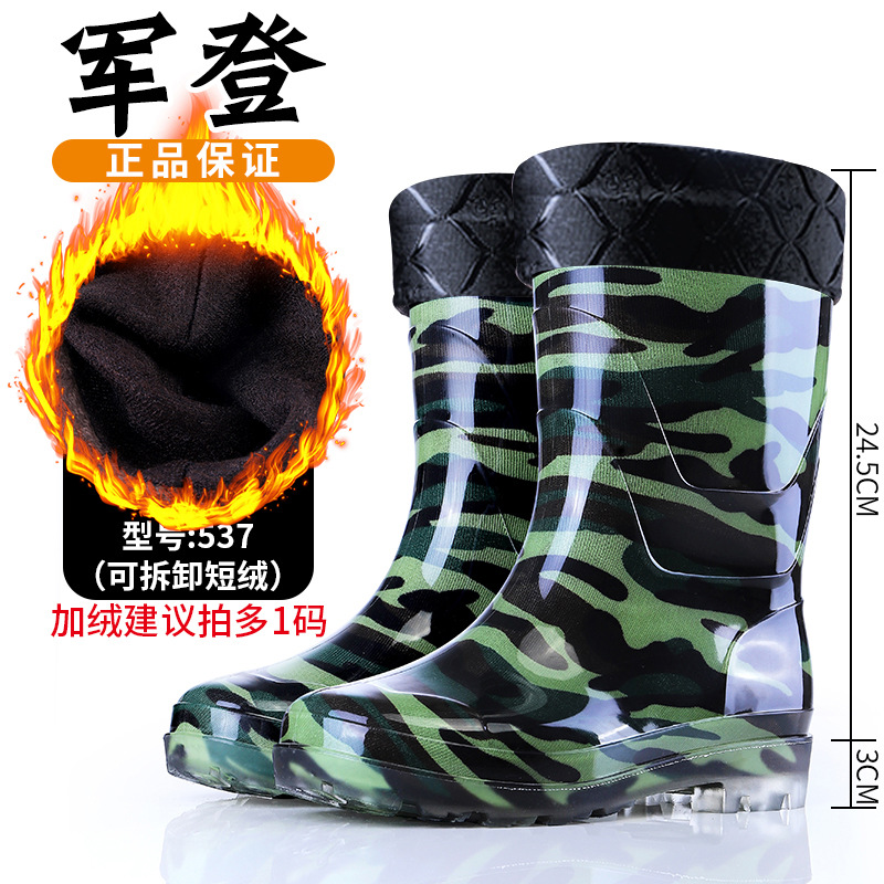 남성과 여성의 위장 중간 배럴 장화 방수 미끄럼 방지 워터 부츠 두꺼운 밑창 노동 물 신발 방수 부츠 고무 신발 오버 슈즈 기모스토어 가기
