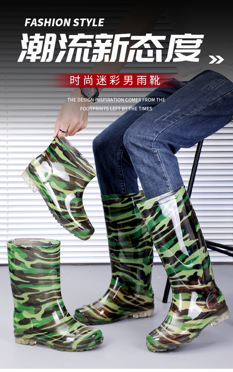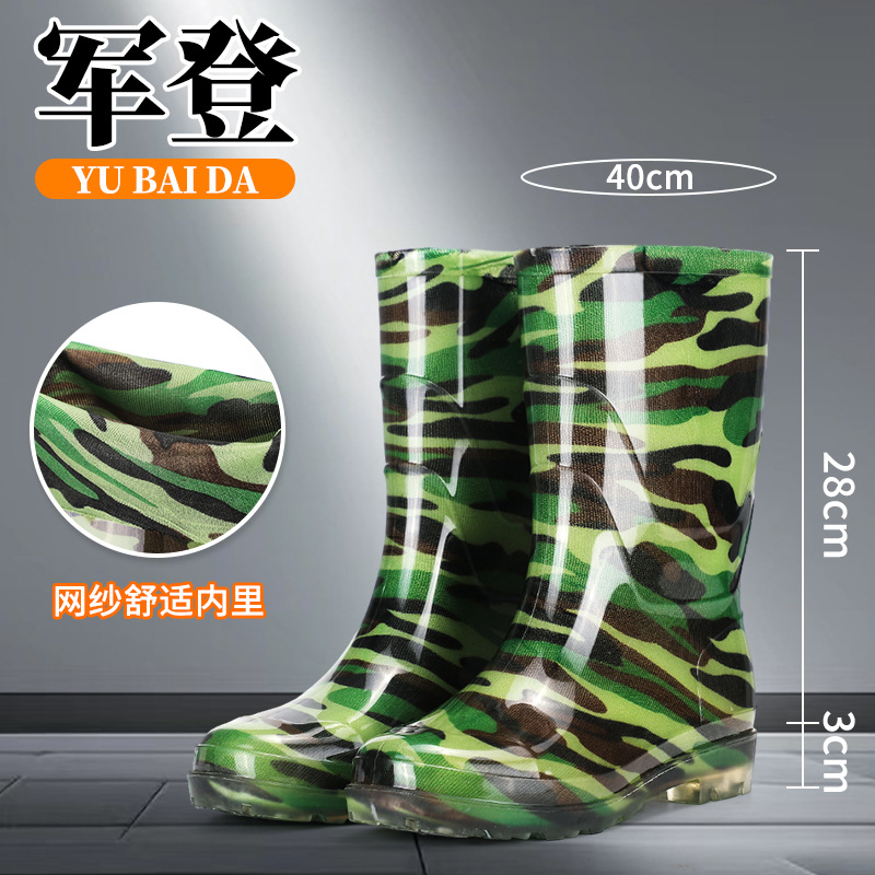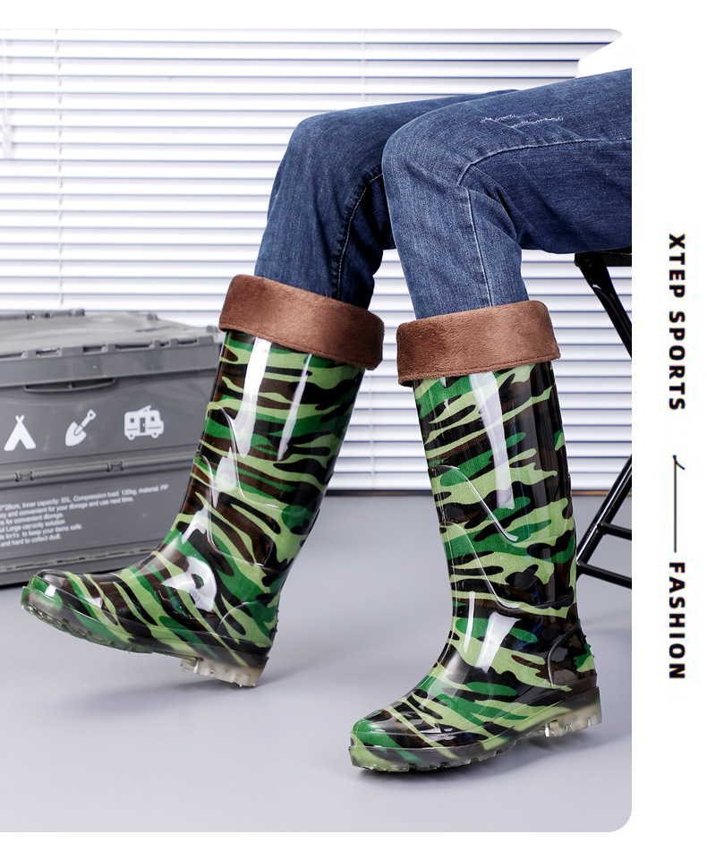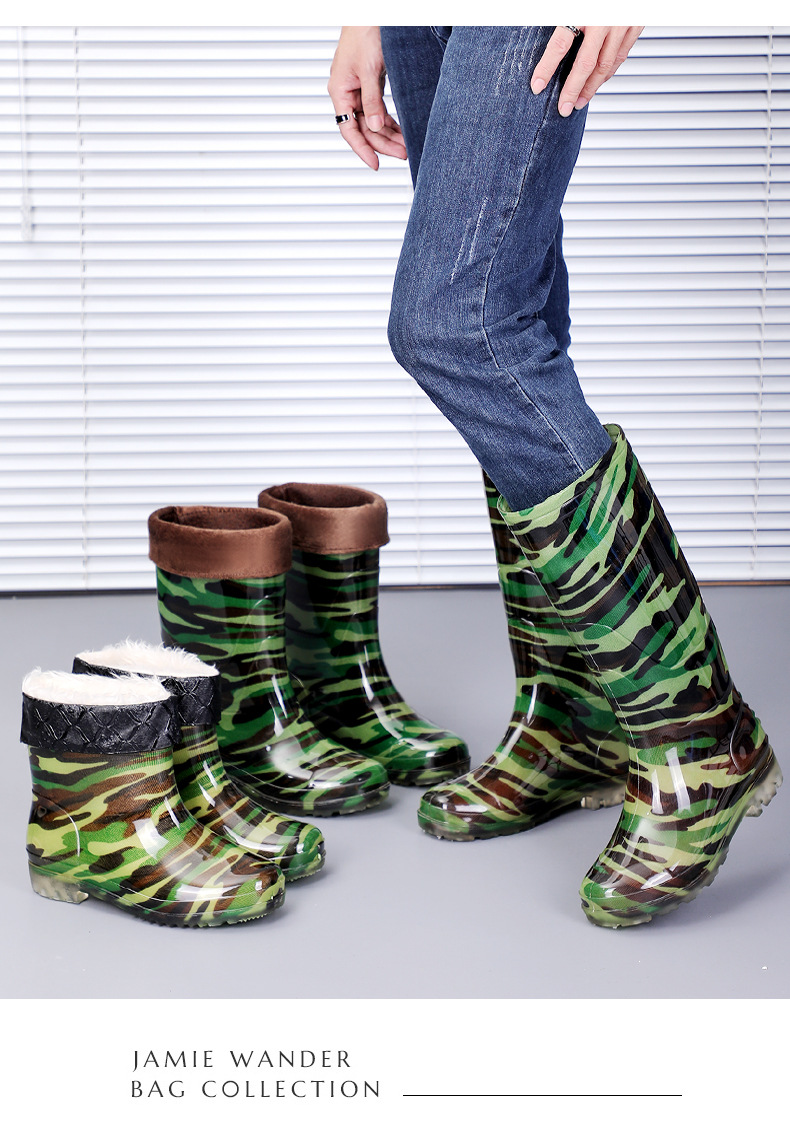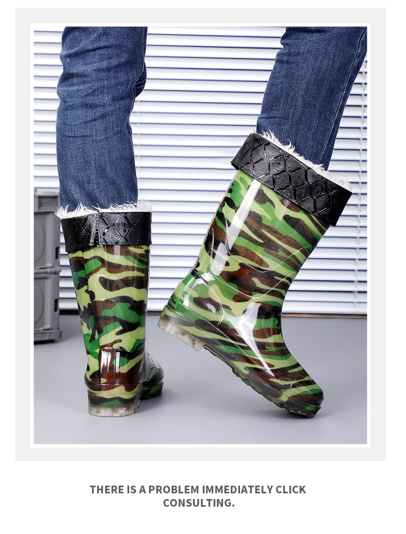 남성과 여성의 위장 중간 배럴 장화 방수 미끄럼 방지 워터 부츠 두꺼운 밑창 노동 물 신발 방수 부츠 고무 신발 오버 슈즈 기모