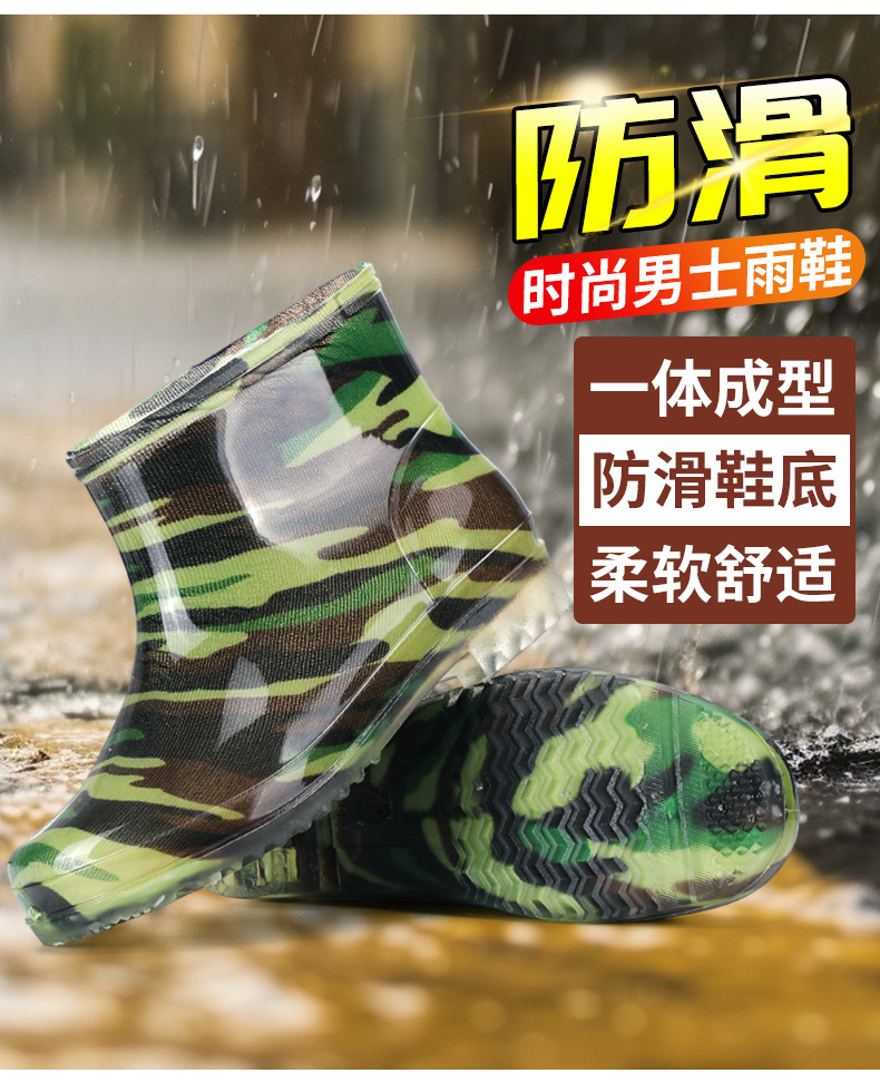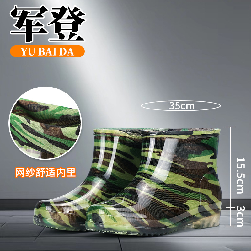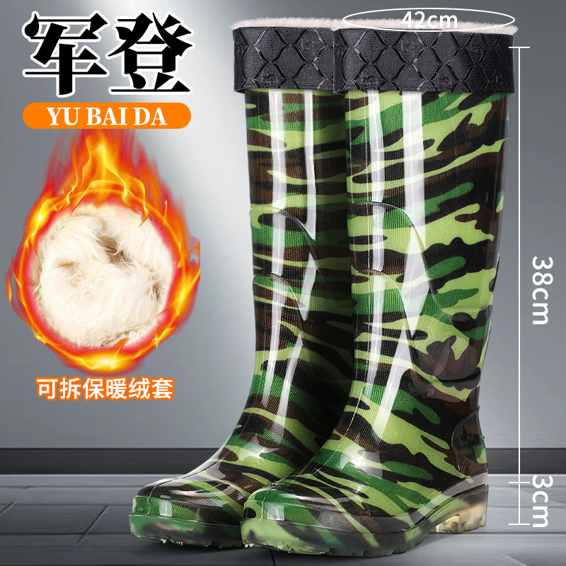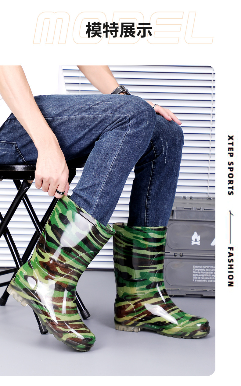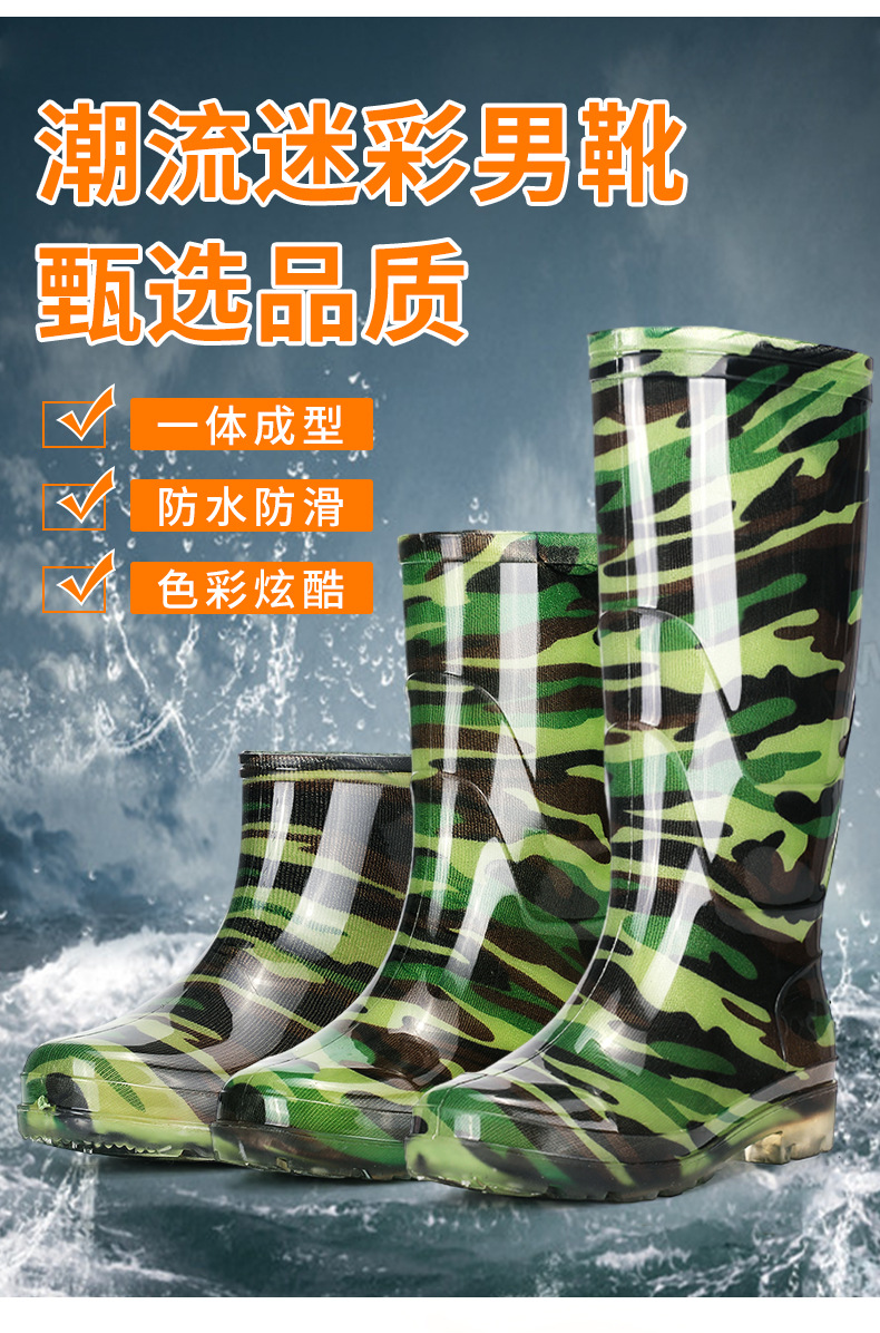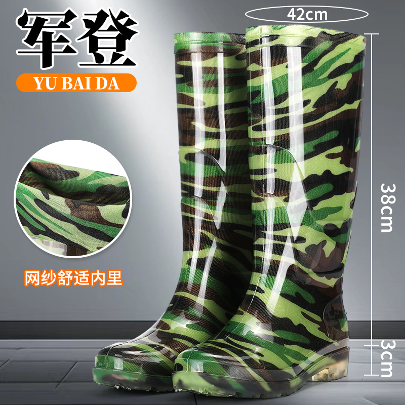남성과 여성의 위장 중간 배럴 장화 방수 미끄럼 방지 워터 부츠 두꺼운 밑창 노동 물 신발 방수 부츠 고무 신발 오버 슈즈 기모