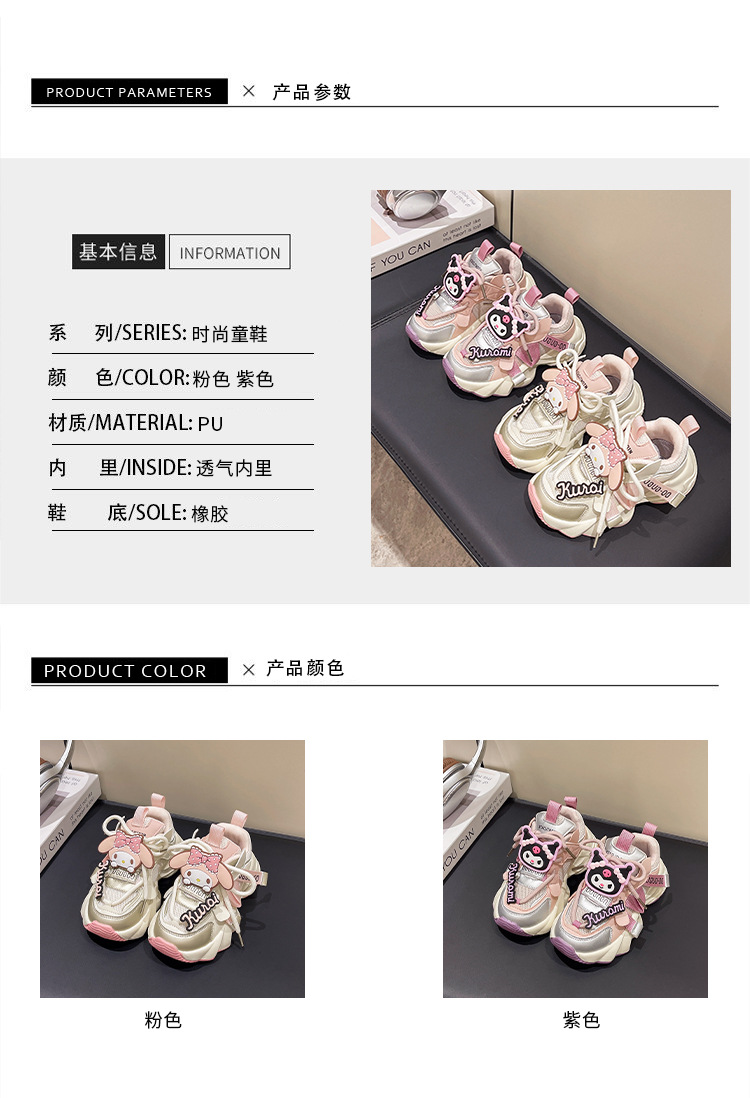 여자 야외 스포츠 신발 2022 봄과 가을 새로운 어린이 Kuromi 아빠 신발 멜로디 공주 신발 운동화