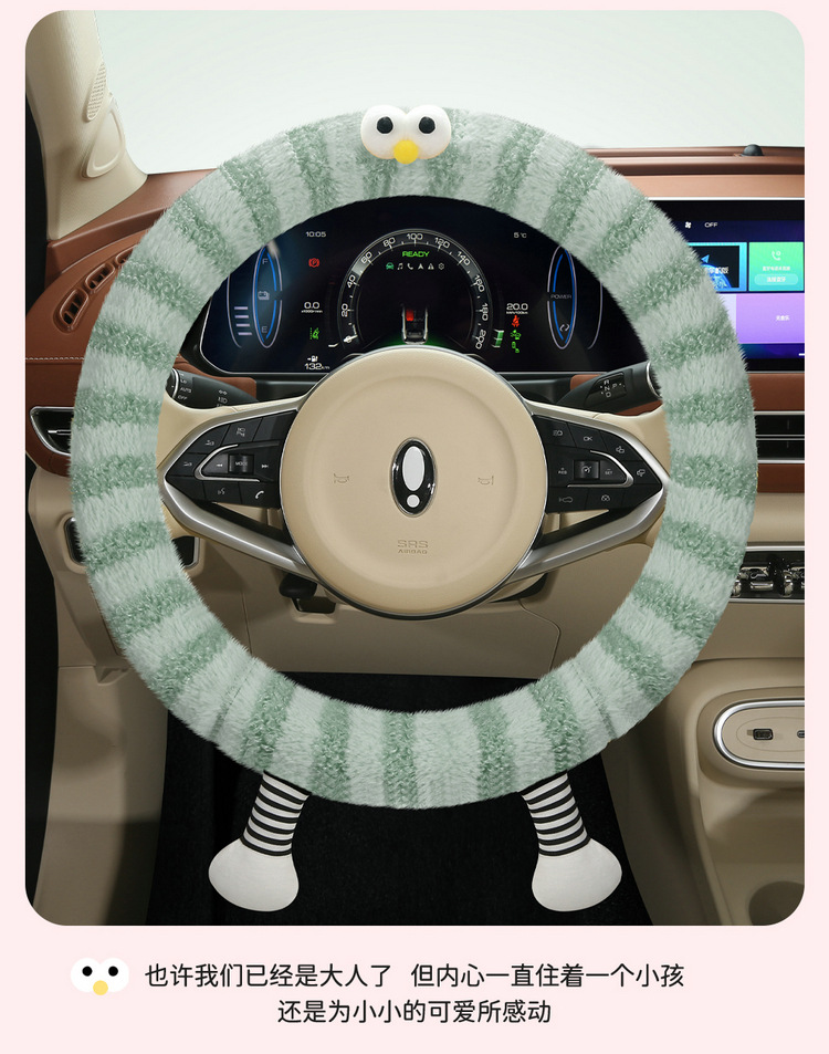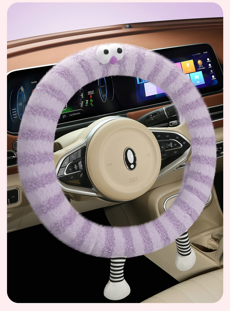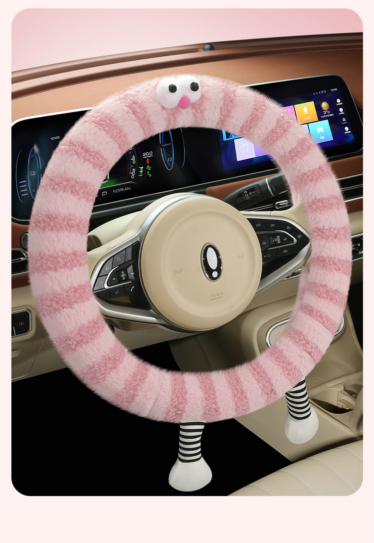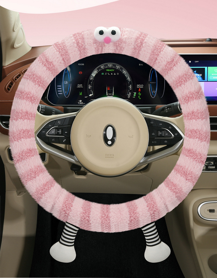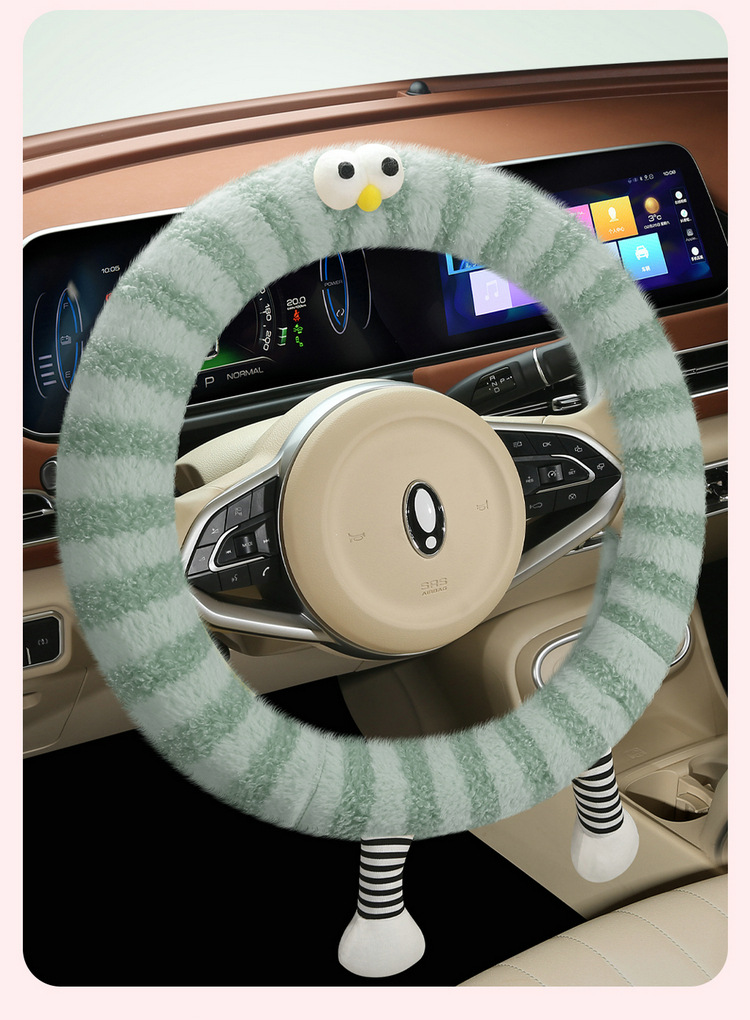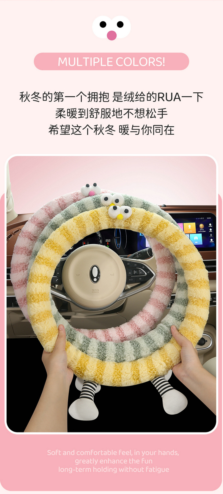 겨울 봉제 2024 새로운 작은 괴물 미끄럼 방지 따뜻한 만화 귀여운 여성의 자동차 스티어링 휠 세트 큰 눈 귀여운스토어 가기