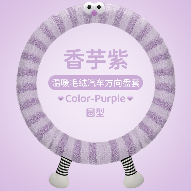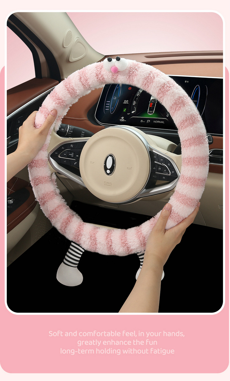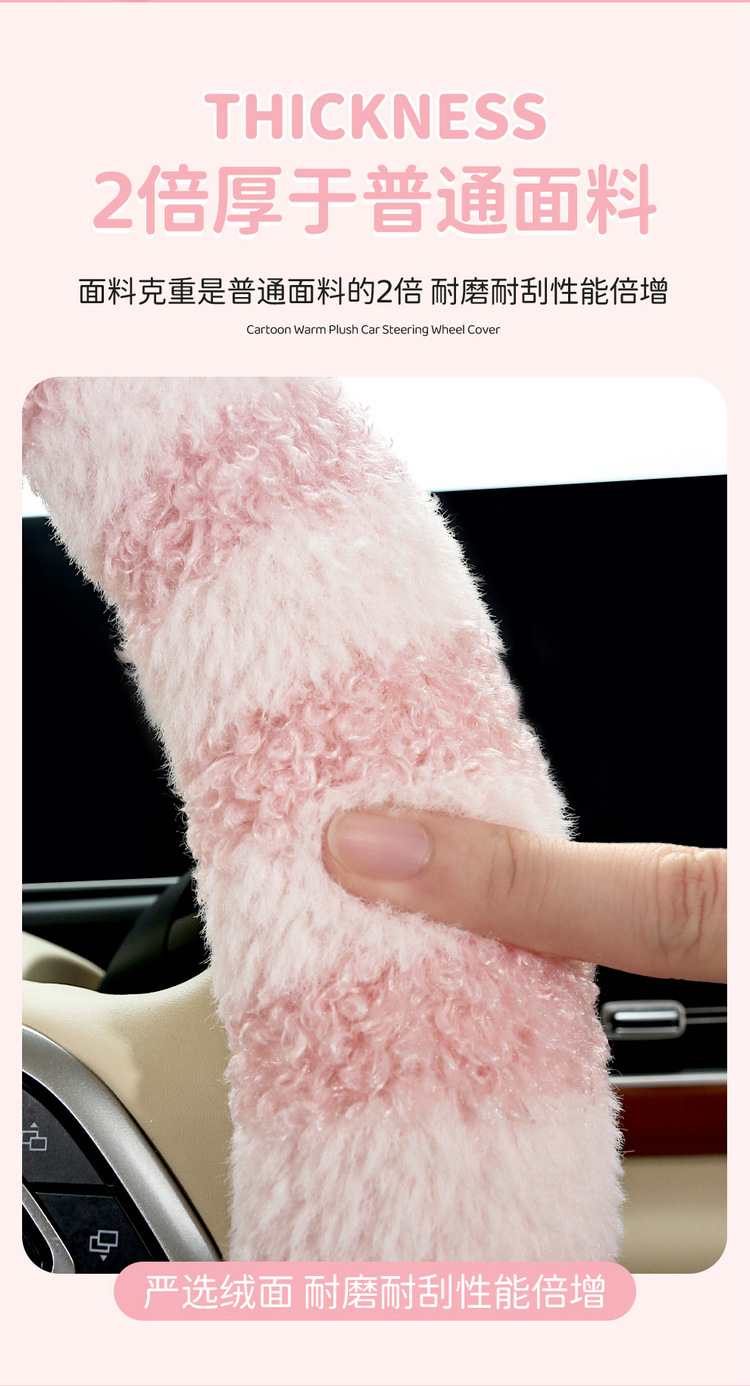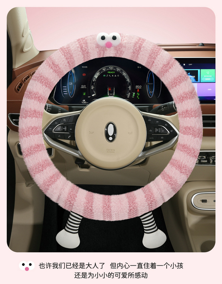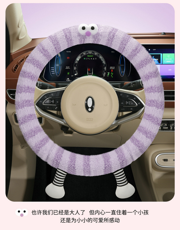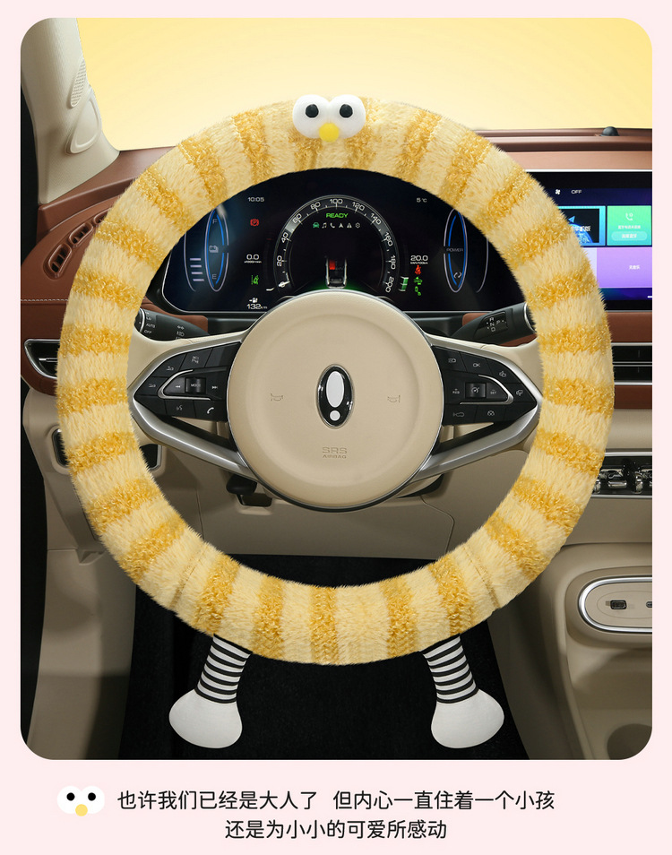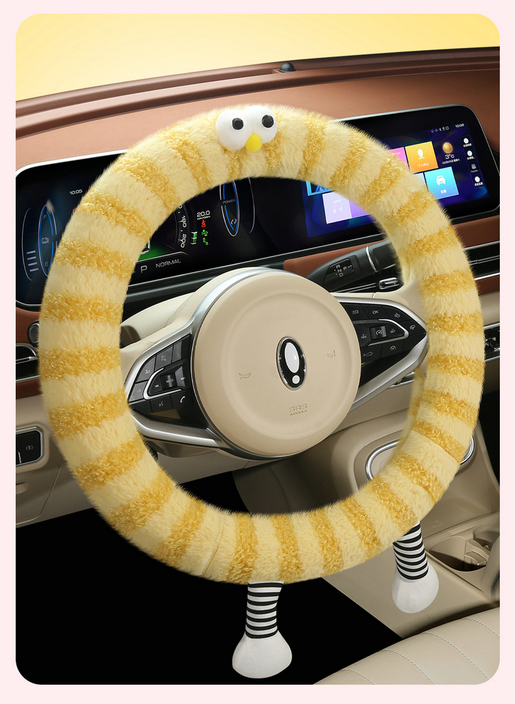 겨울 봉제 2024 새로운 작은 괴물 미끄럼 방지 따뜻한 만화 귀여운 여성의 자동차 스티어링 휠 세트 큰 눈 귀여운스토어 가기