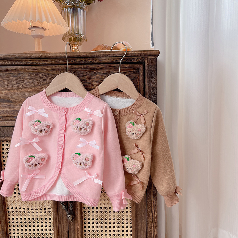 한국 스타일 소녀의 니트 카디건 2024 새로운 세련된 스웨터 아기 소녀의 울 패션 코트스토어 가기