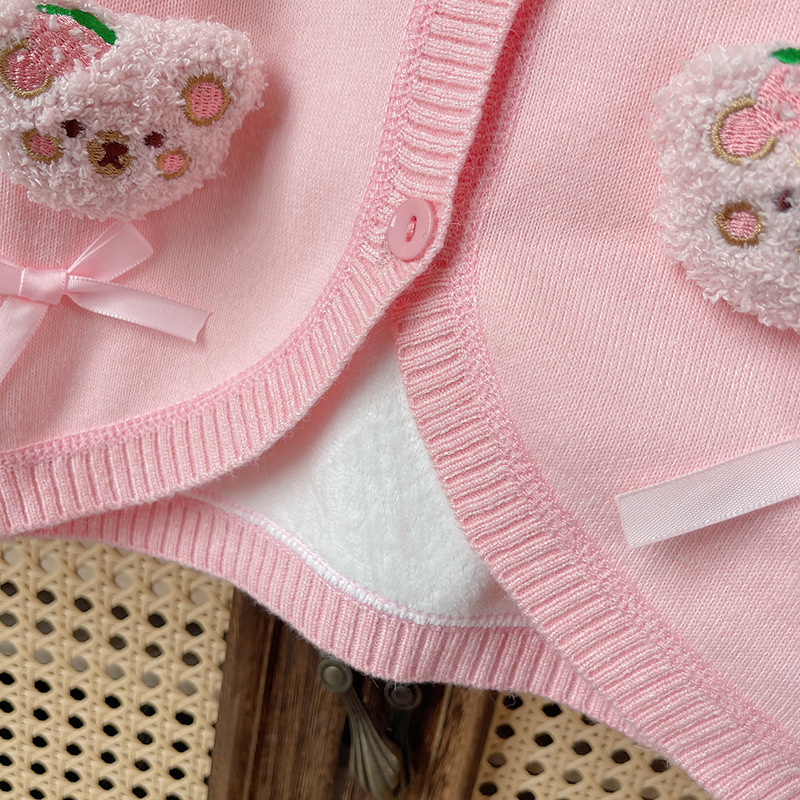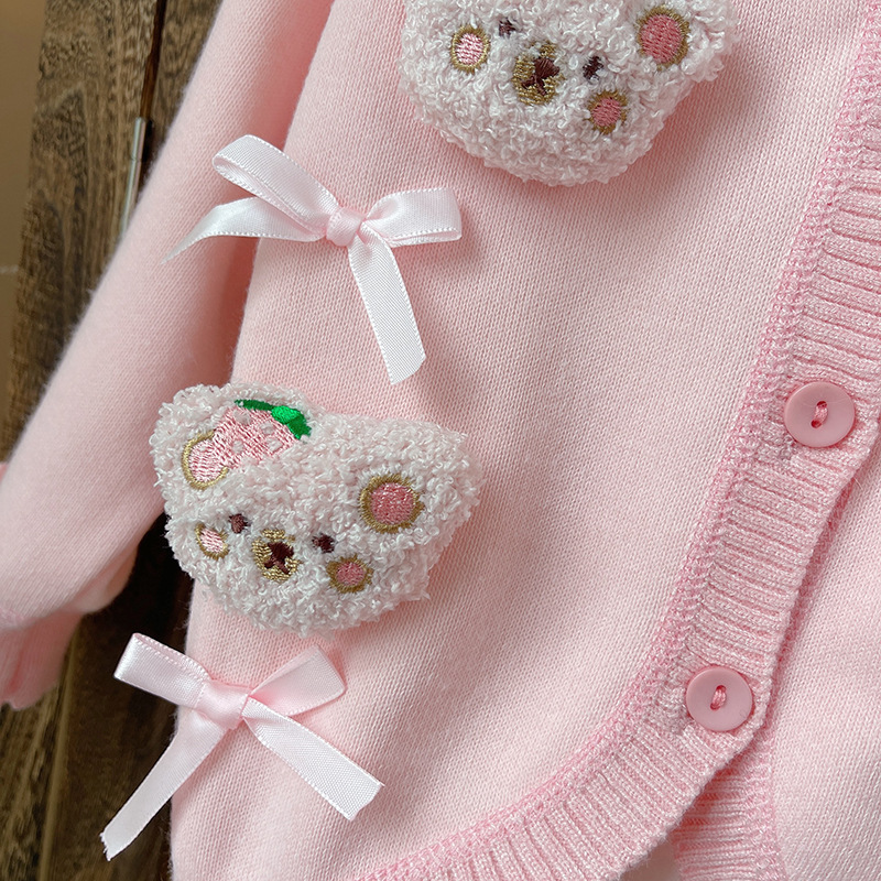 • 핑크 [KF379 여아 자수 곰머리 가디건]