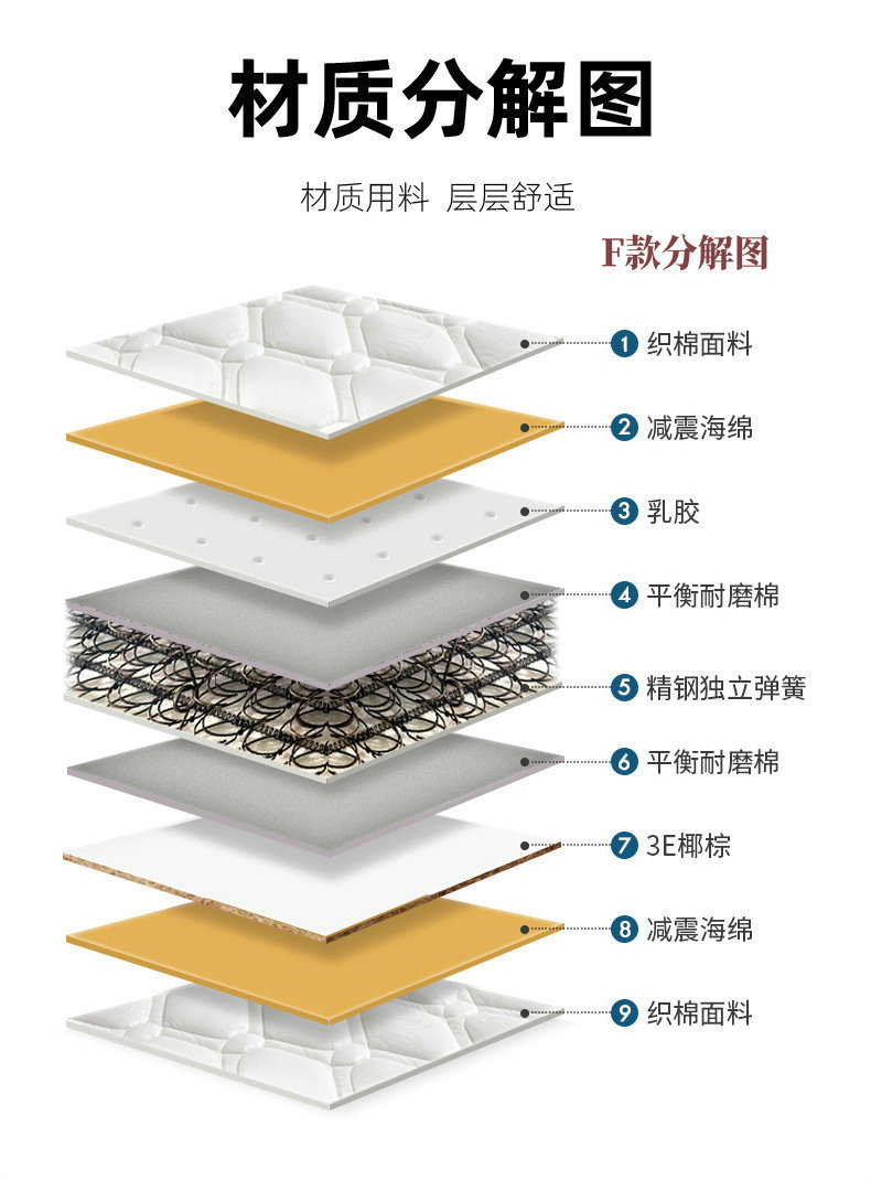 • 독립 스프링 + 3E 코코넛 야자 + 천연 라텍스 F 스타일