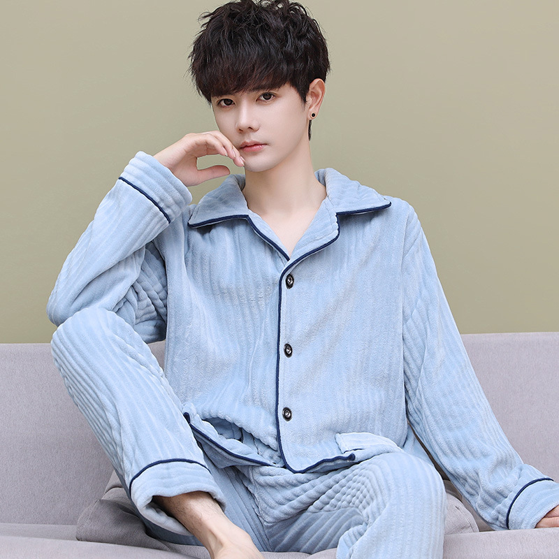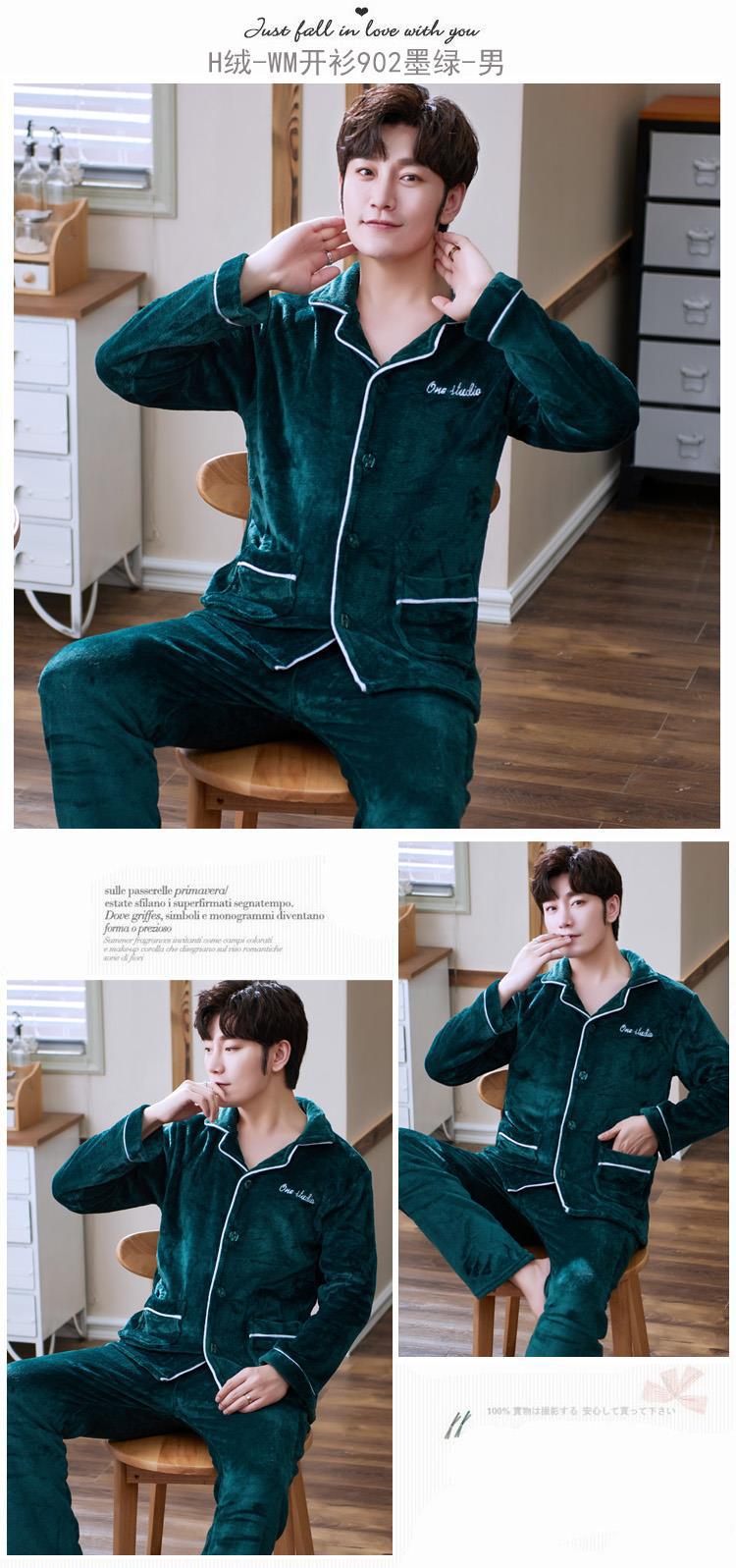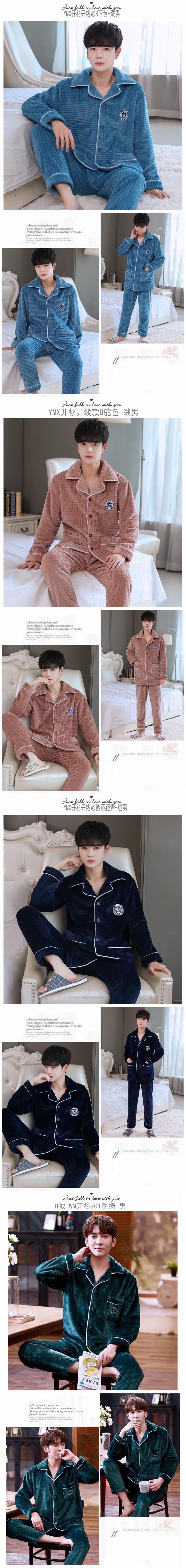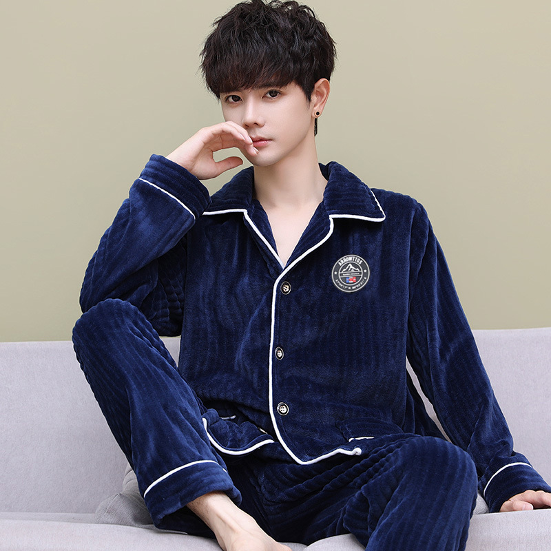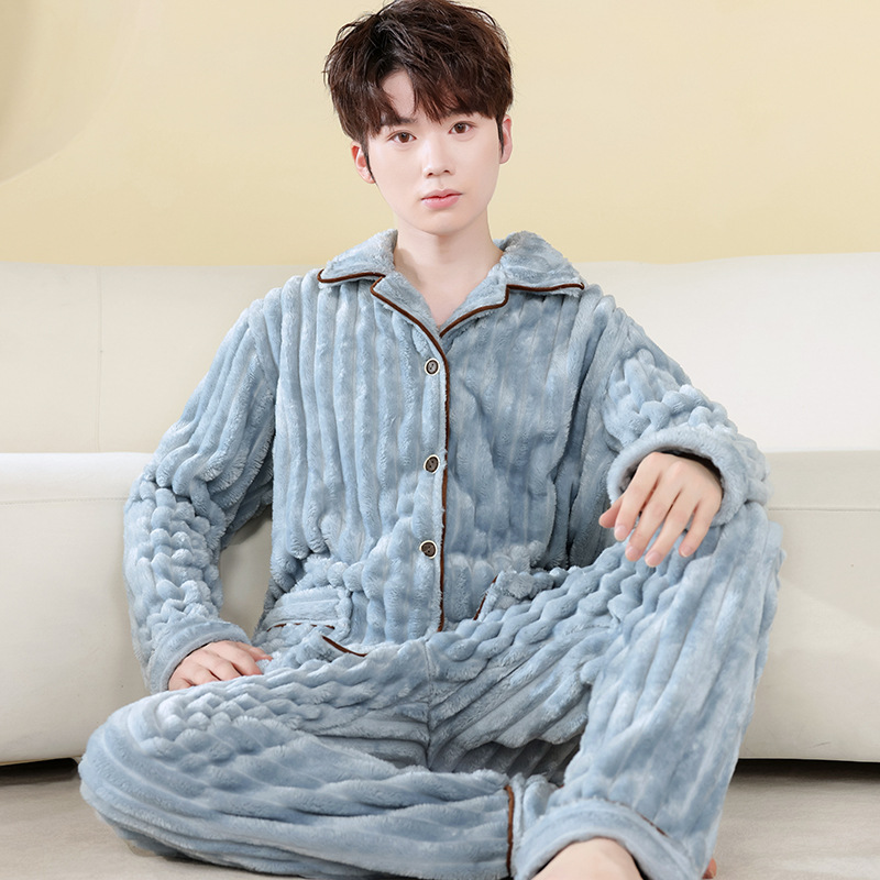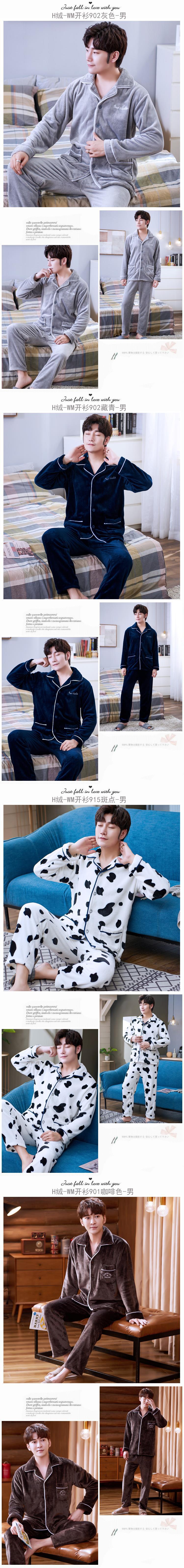 2024 뉴 코랄 플리스 파자마 남자 겨울 두꺼운 남자 세트 기모 플란넬 가을/겨울 홈웨어 남성스토어 가기