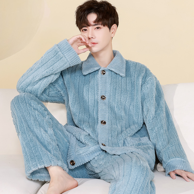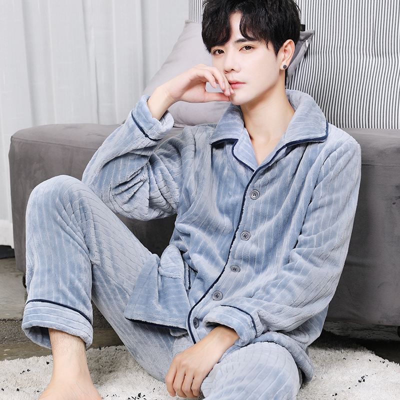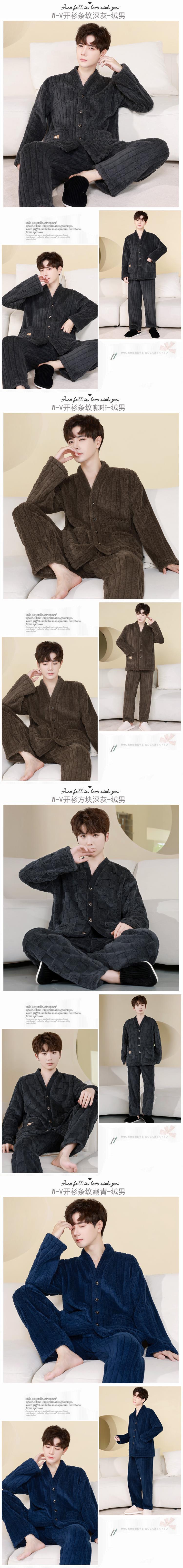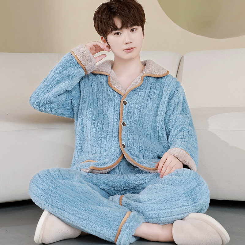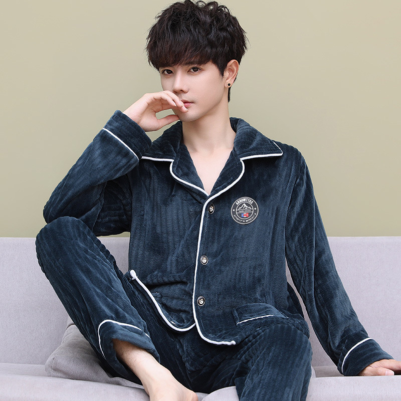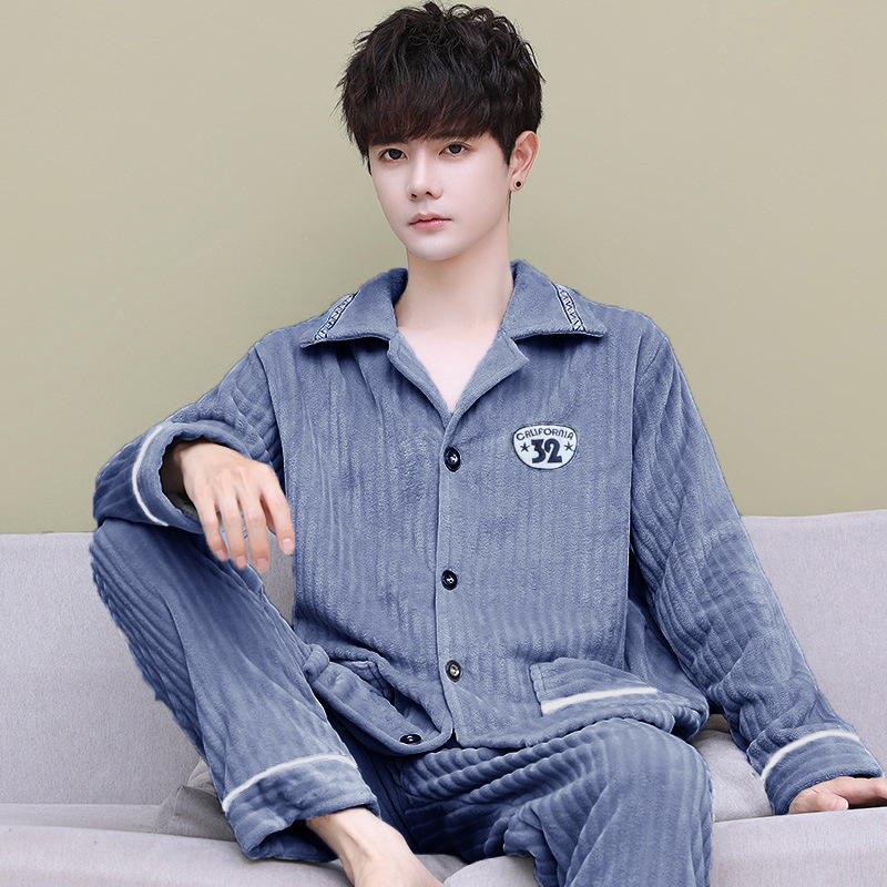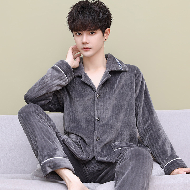 2024 뉴 코랄 플리스 파자마 남자 겨울 두꺼운 남자 세트 기모 플란넬 가을/겨울 홈웨어 남성스토어 가기