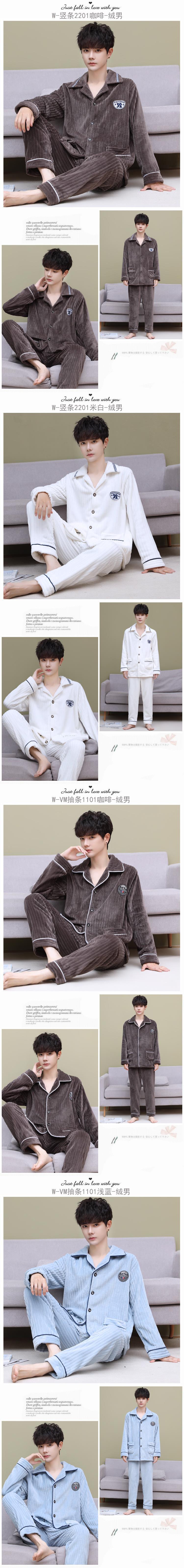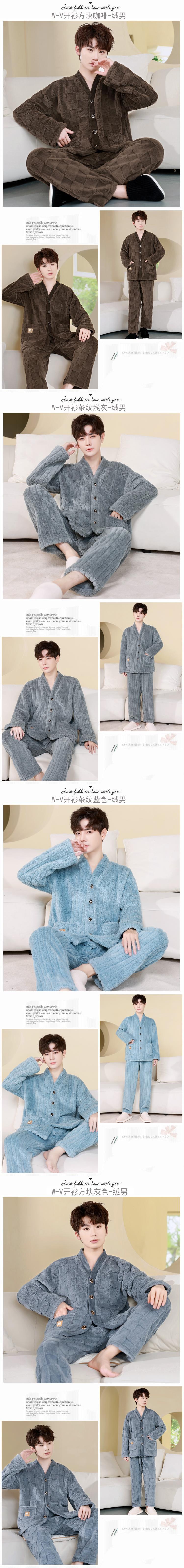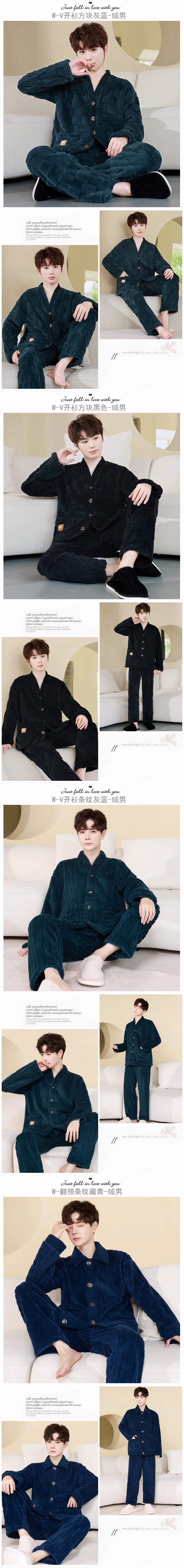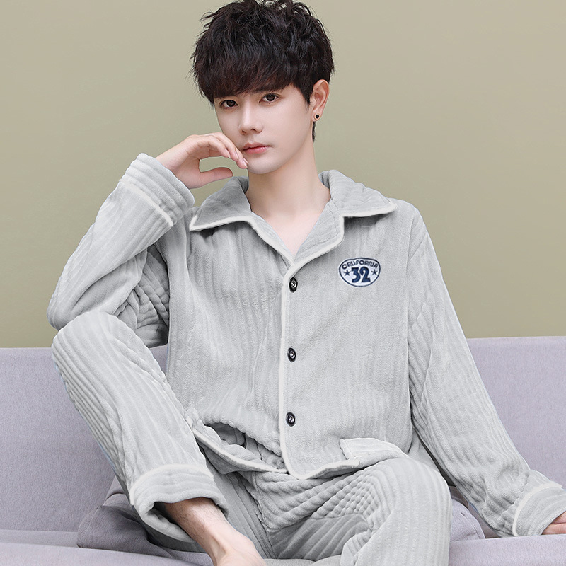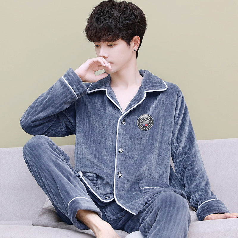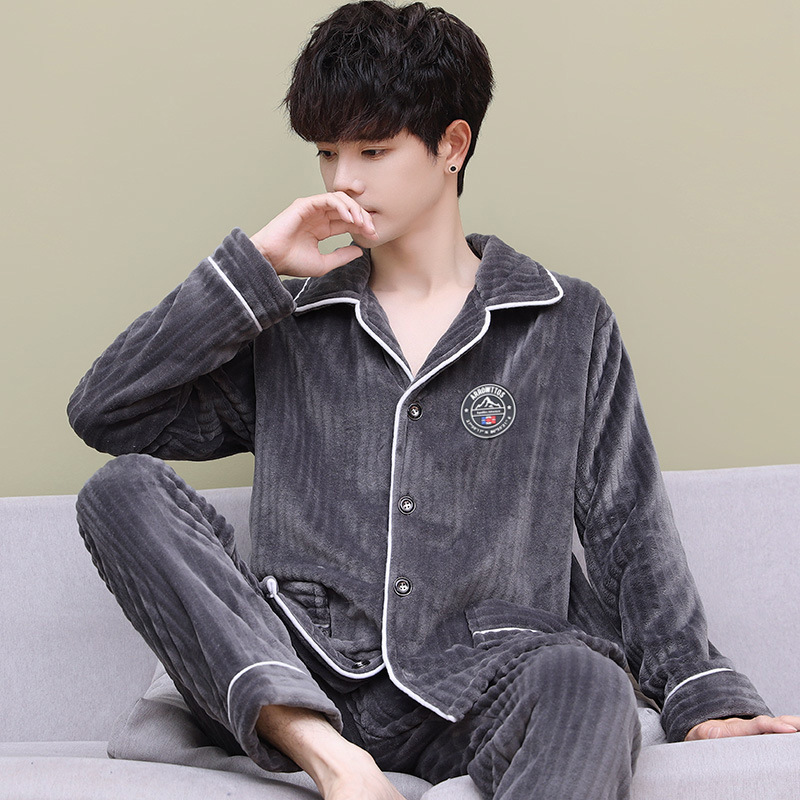 2024 뉴 코랄 플리스 파자마 남자 겨울 두꺼운 남자 세트 기모 플란넬 가을/겨울 홈웨어 남성스토어 가기